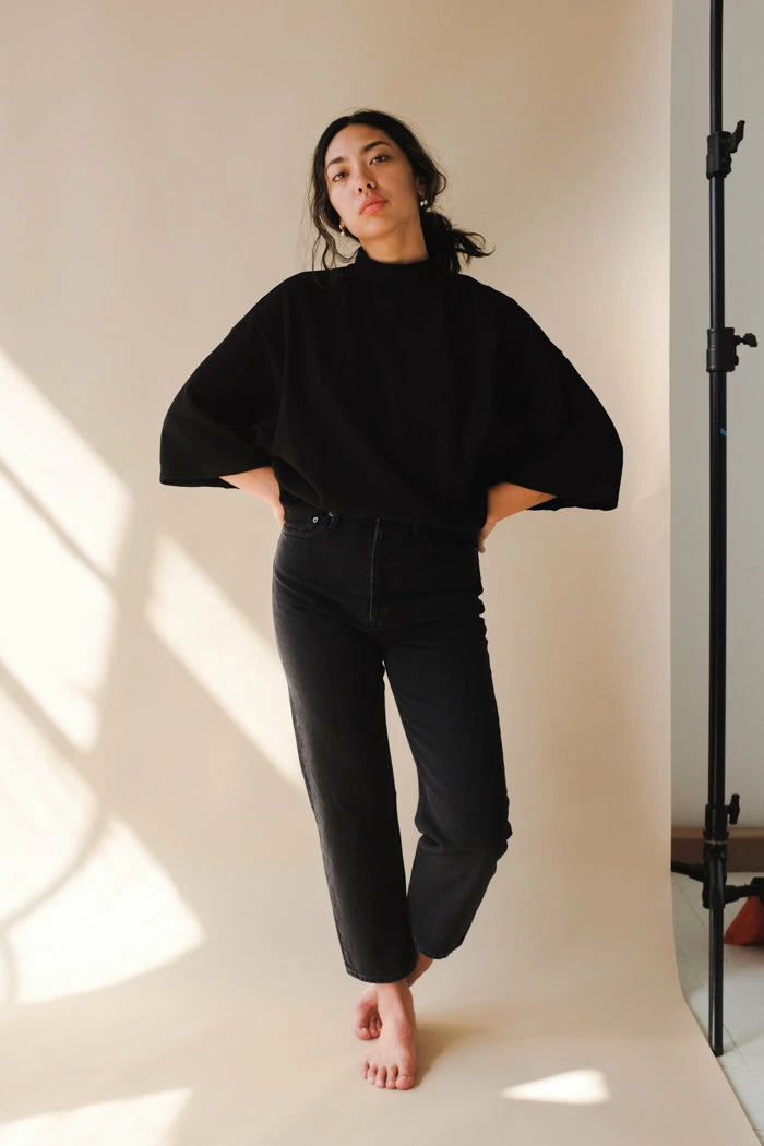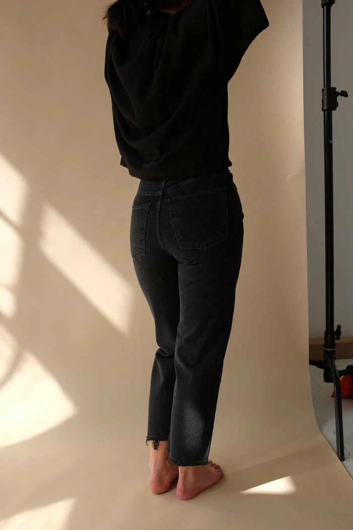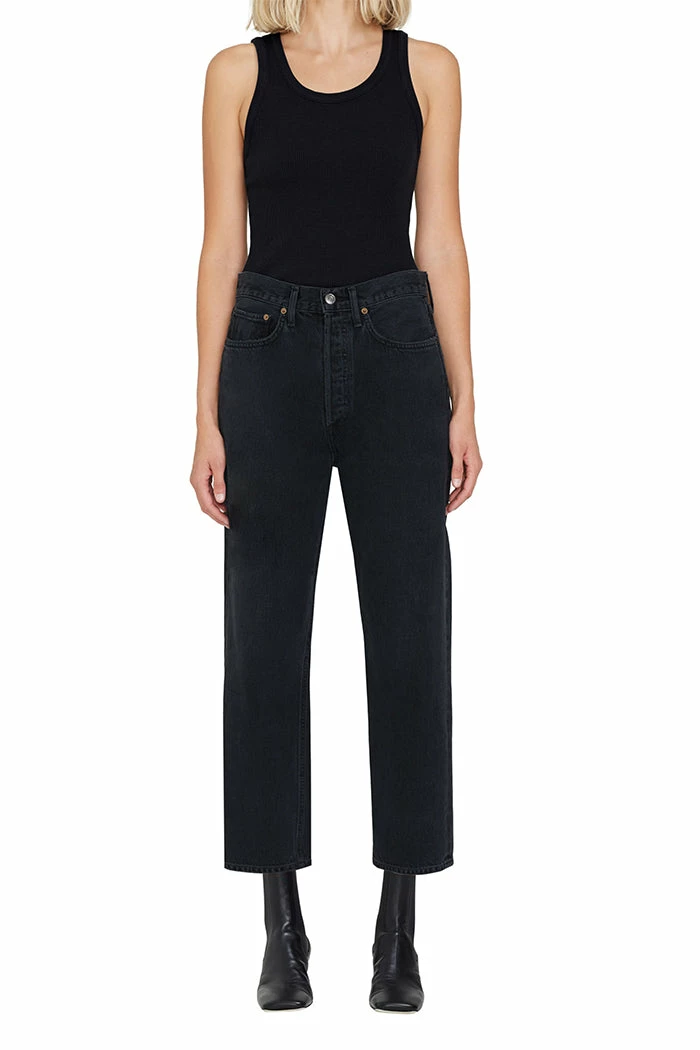 Agolde 90’s crop loose jeans in clean vintage light blue Pitch wash. A cropped version of the iconic 90’s jean. This decade inspired mid-rise is designed to sit relaxed on the waist with an eased up fit through the body. Non stretch denim. Button fly.