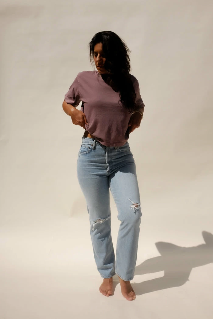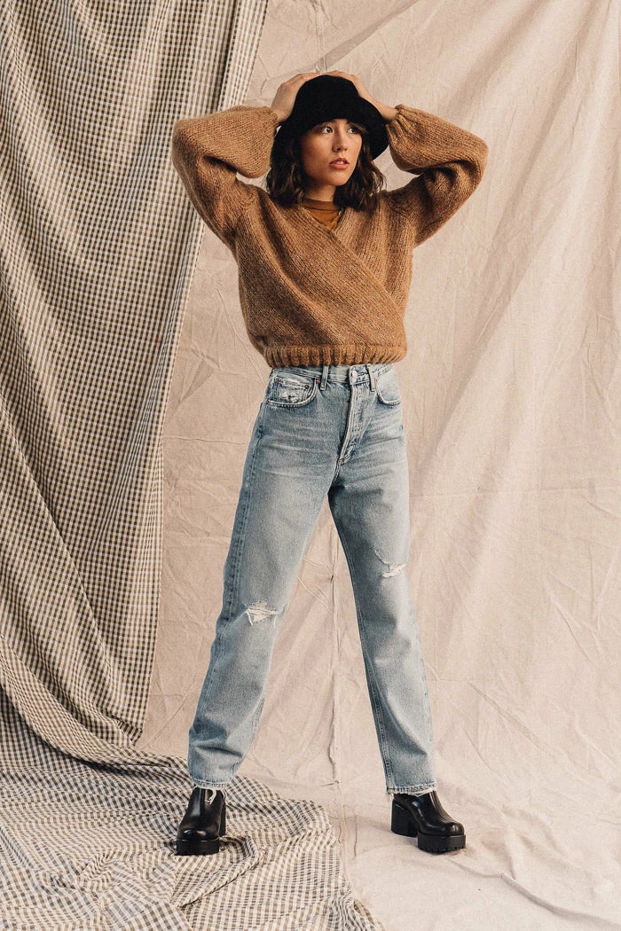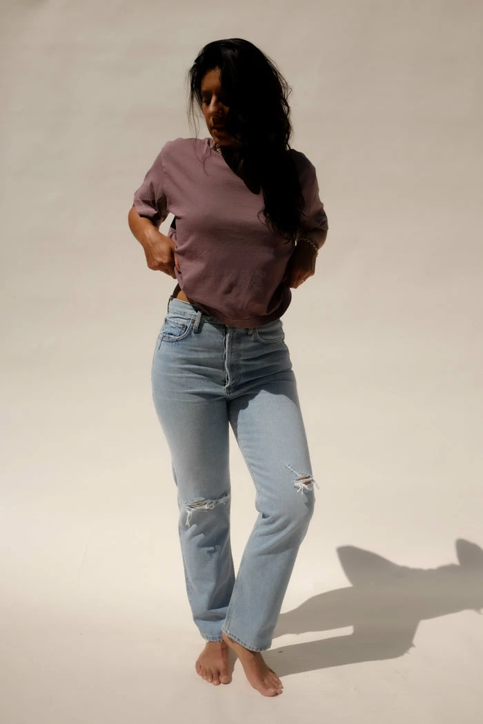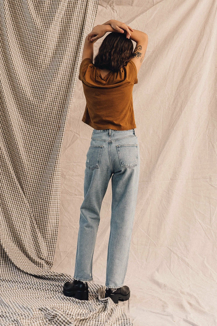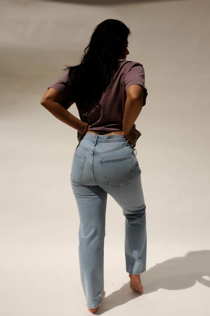 Agolde 90’s loose fit jeans in captured wash with vintage indigo denim with distressed details. Throw it back in this favorite mid rise fit—for a high rise fit, size down 1-2 sizes. Inspired by oversized anti-fit references of the 90’s, this jean features a straight outseam and eased up leg silhouette. Button fly closure.