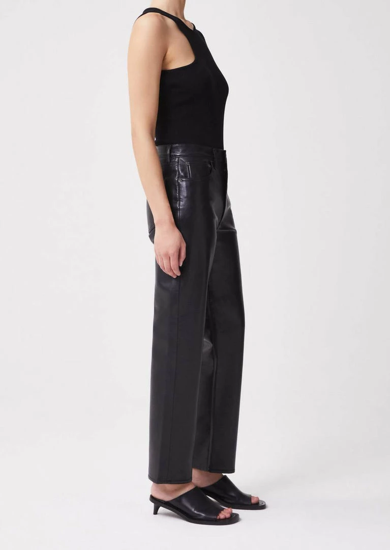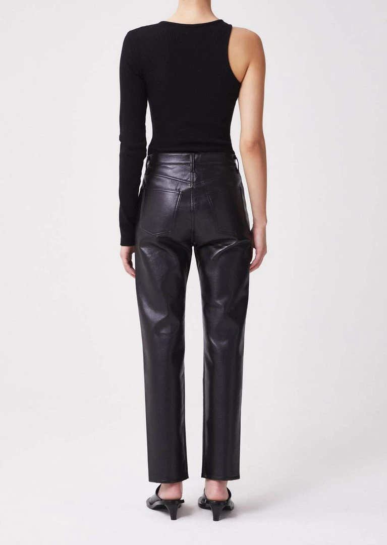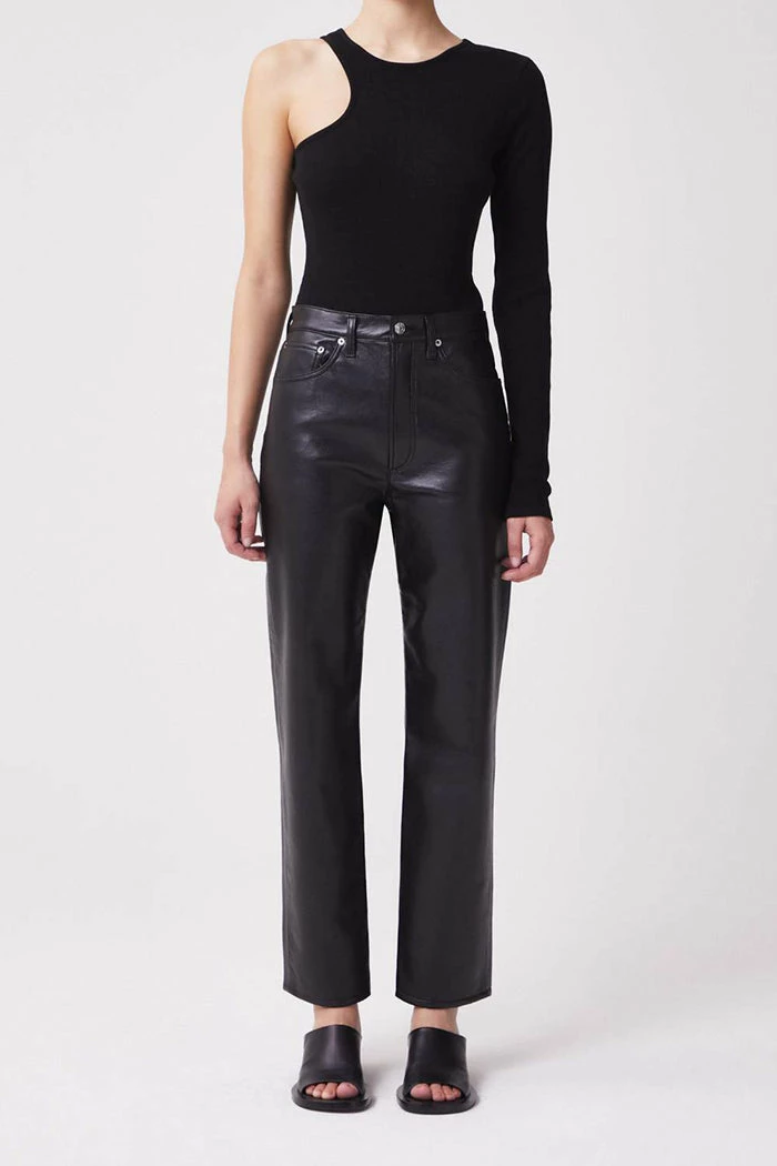 Agolde Bea cutaway bodysuit in black. Crafted from our signature rib, the Bea bodysuit features a single sleeve and symmetrical neckline. The fit that flatteringly hugs your frame and styles best tucked into denim or tonal sweats.