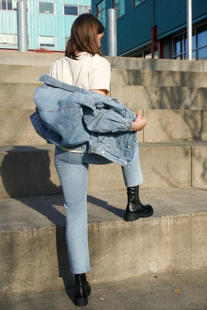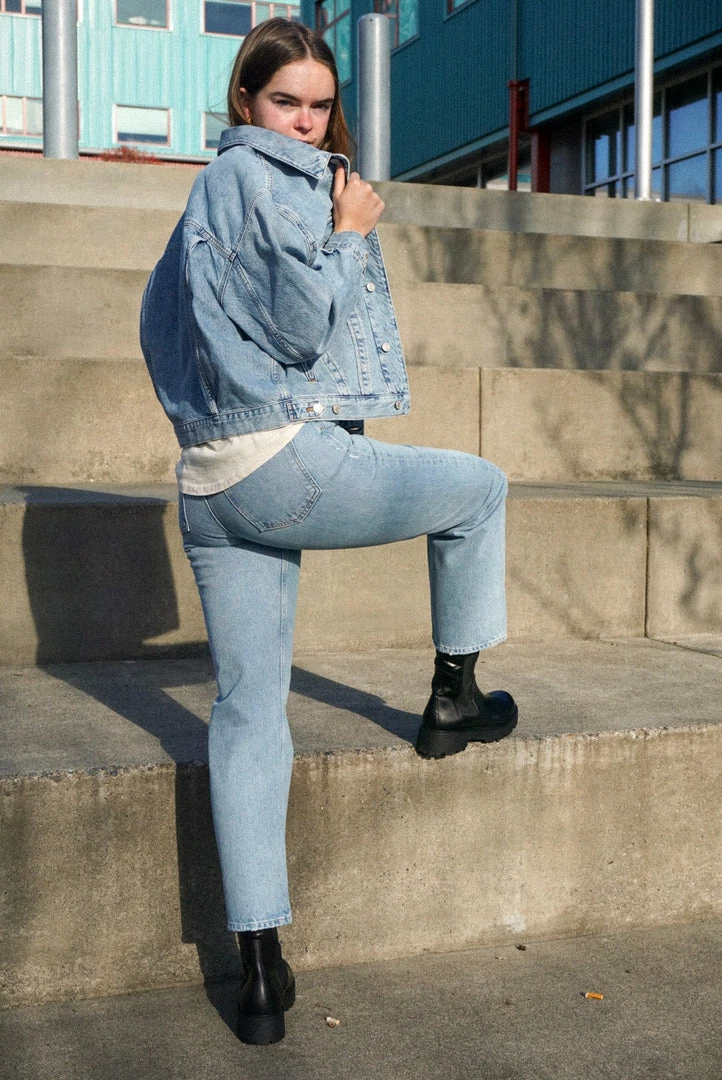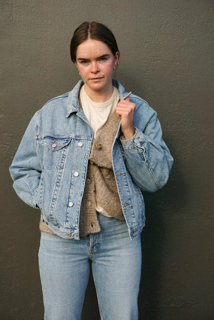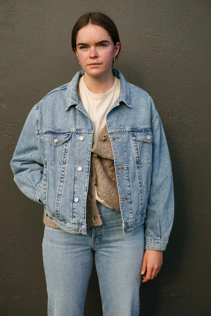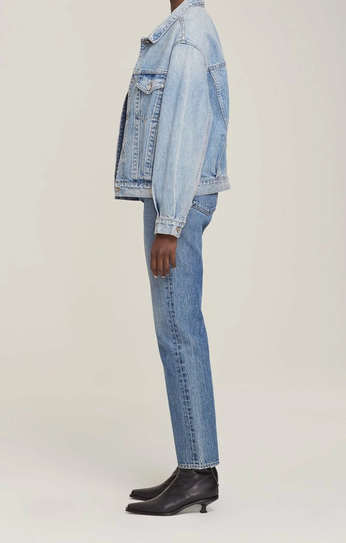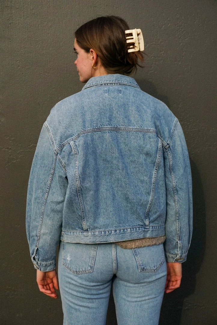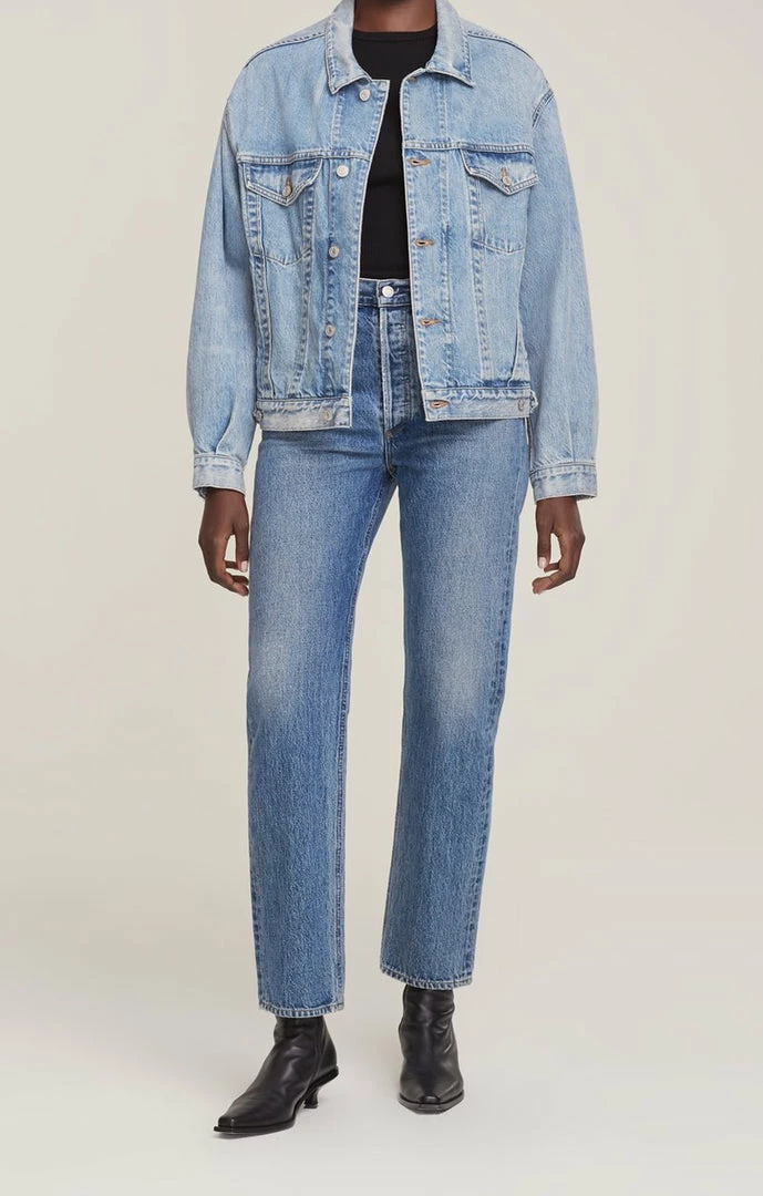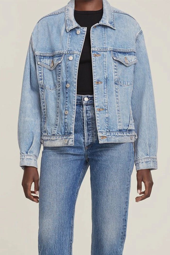 Agolde Charli oversized denim jacket in light, vintage indigo Billboard wash.
