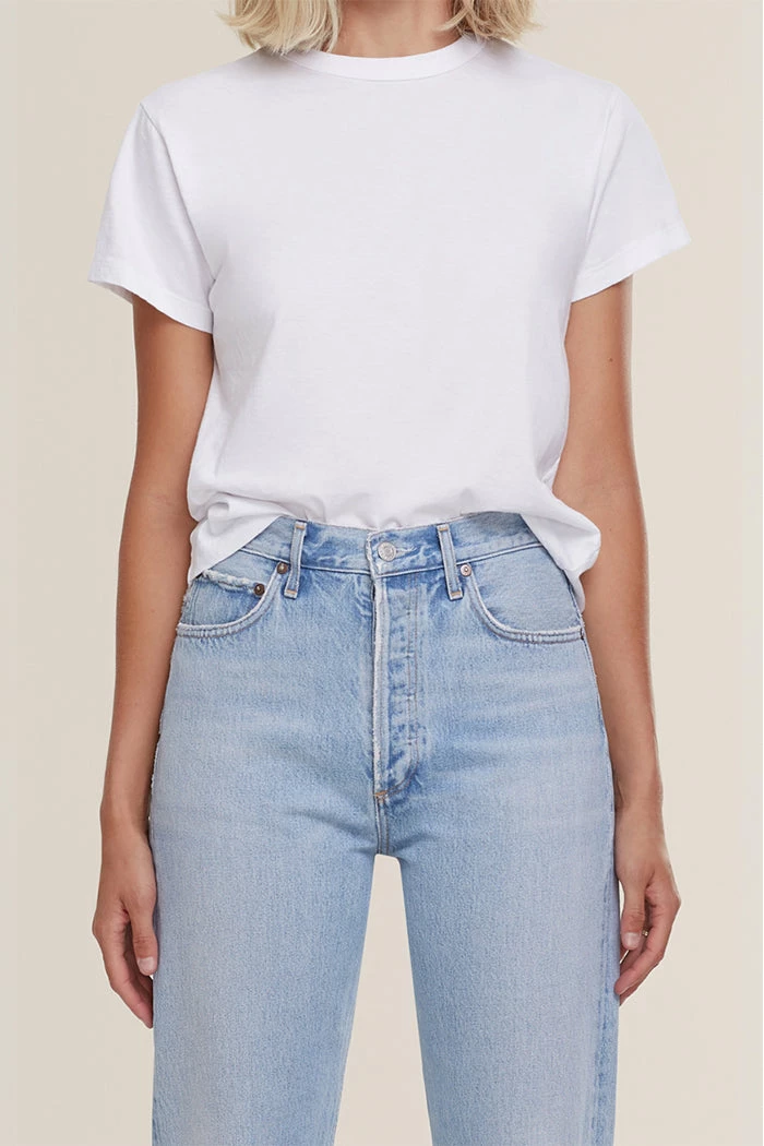 Agolde Rena super soft, crew neck, short sleeve t-shirt in white.Â