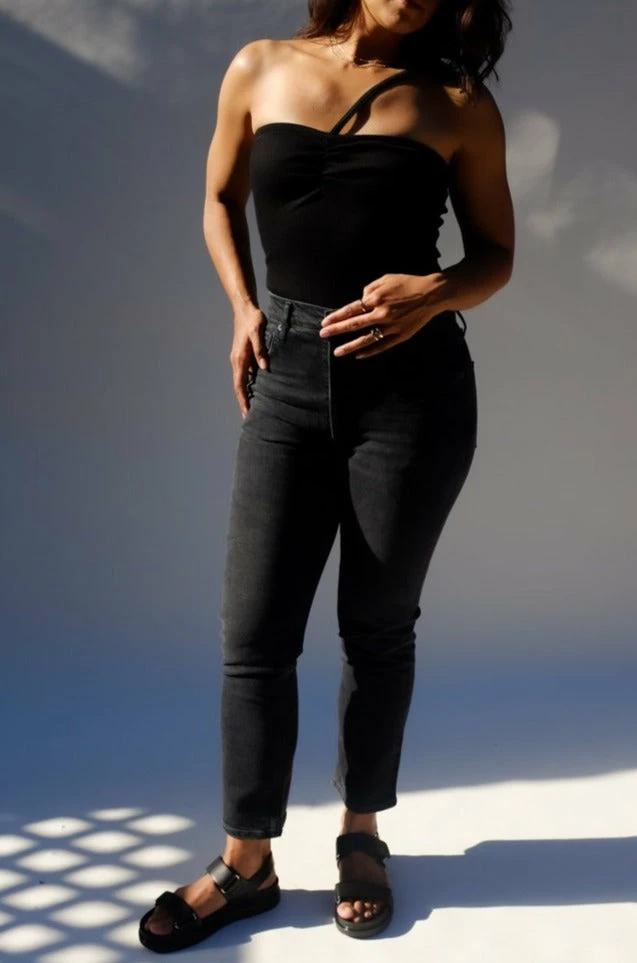 High Rise Straight Crop | Front Rise: 11 1/2″ | Inseam: 26″ | Leg Opening: 14″