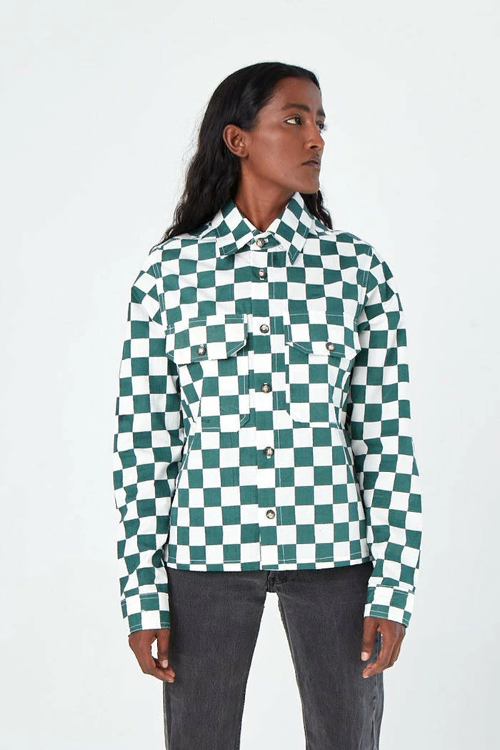 Dushyant Sophia long sleeve green chessboard jacket top.