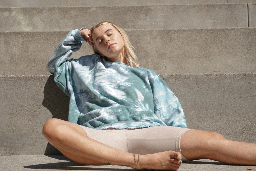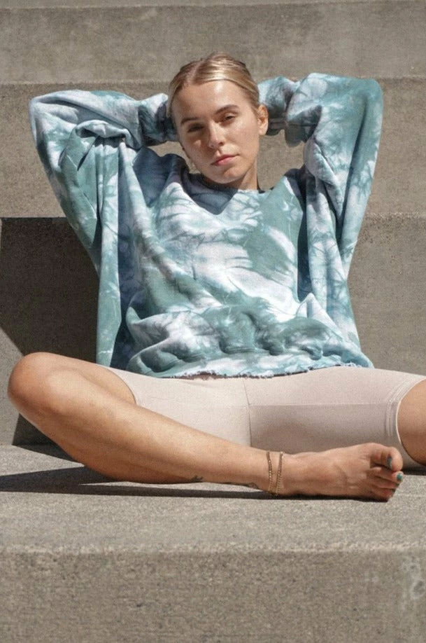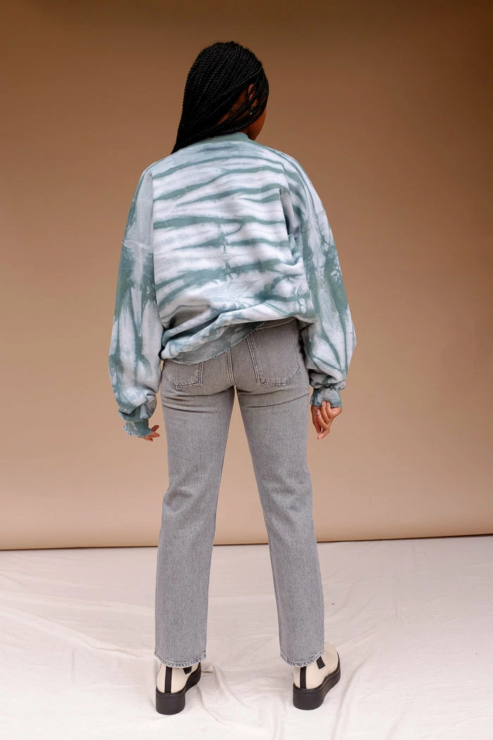 Eclectic Sun locally hand dyed and distressed exclusively for P&R the pines forest green oversized crewneck sweatshirt in green tie dye wash.