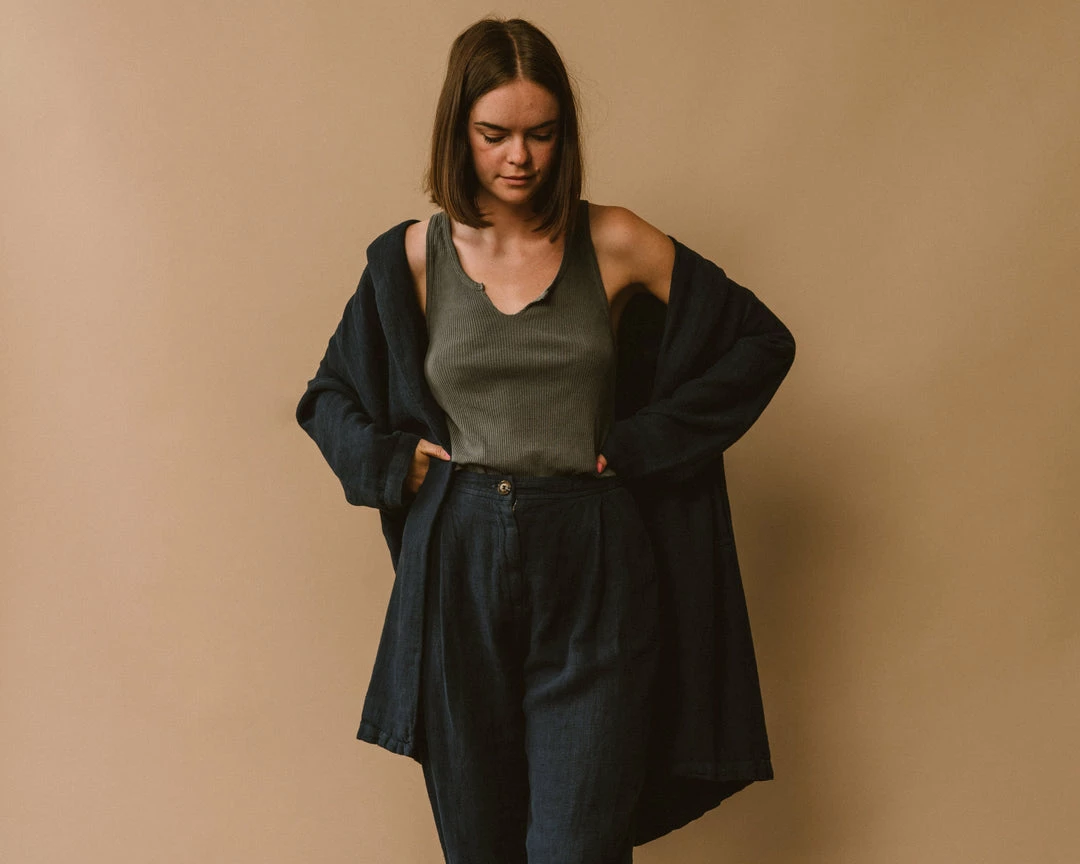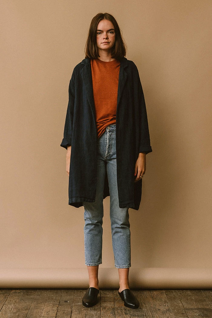 Filosofia Anna linen duster jacket. The Anna Duster Coat is crafted from 100% heavy linen and can be worn over most outfits. The sturdy yet soft fabric will envelope you in comfort as you go about your day.