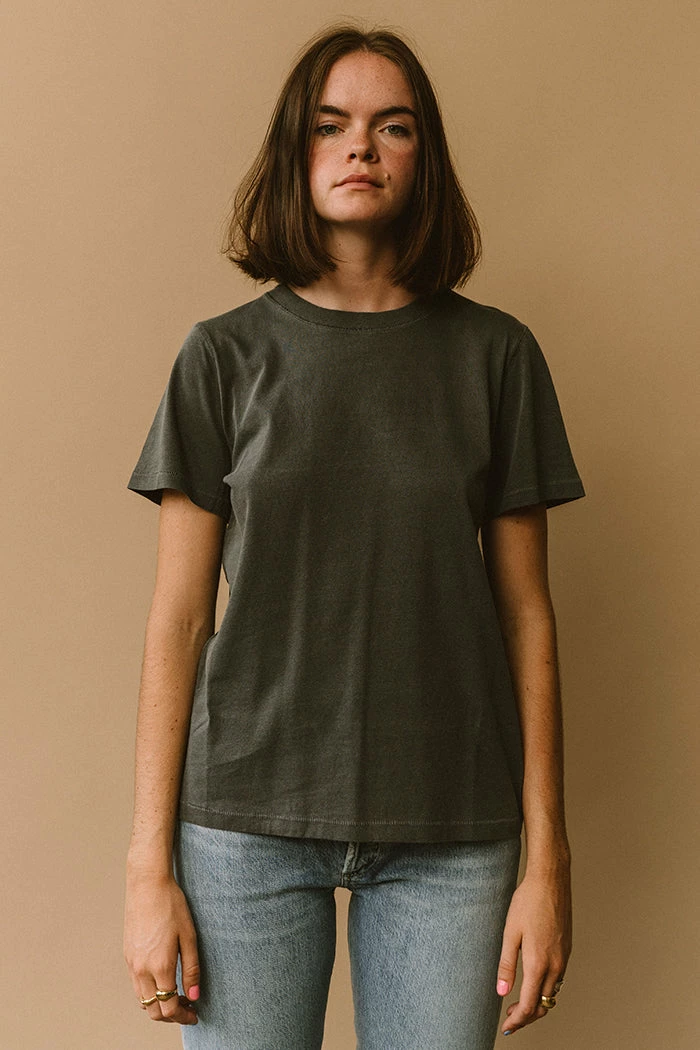 Model is 5’9 and wears a size small. Measurements are taken flat. XS Chest 17.5” Length 24.5”, S Chest 18.5” Length 25”, M Chest 19.5” Length 25.5”, L Chest 20.5” Length 26”.