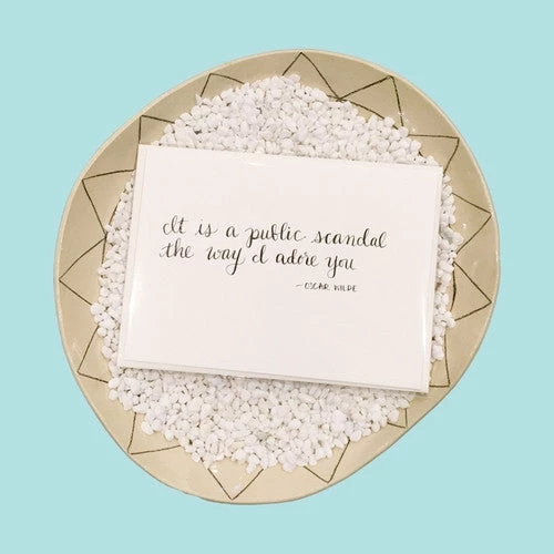 Good Sheila “It is a public scandal the way I adore you – Oscar Wilde” handmade calligraphy card. Blank inside.