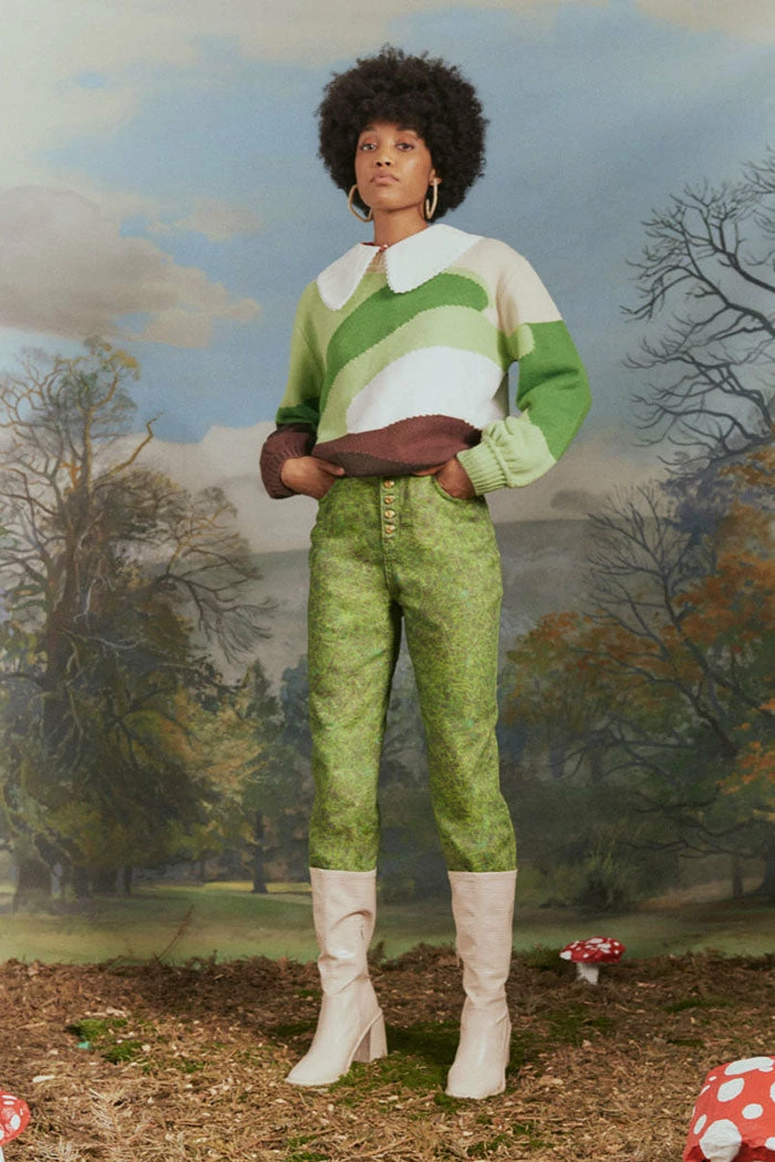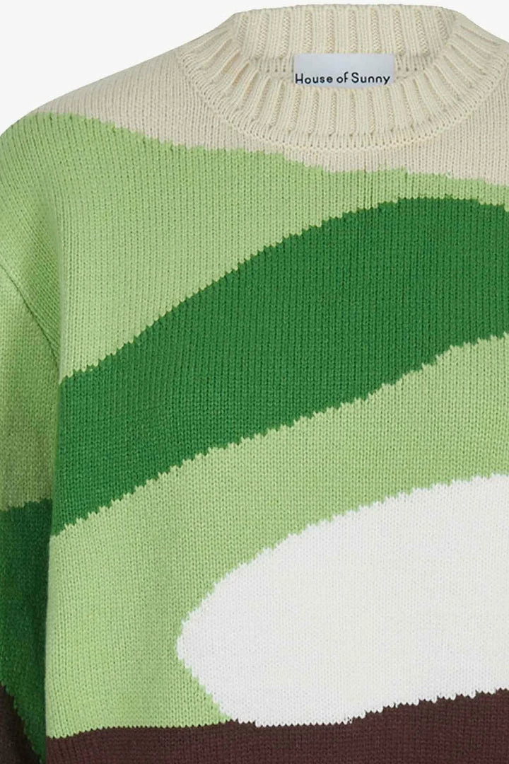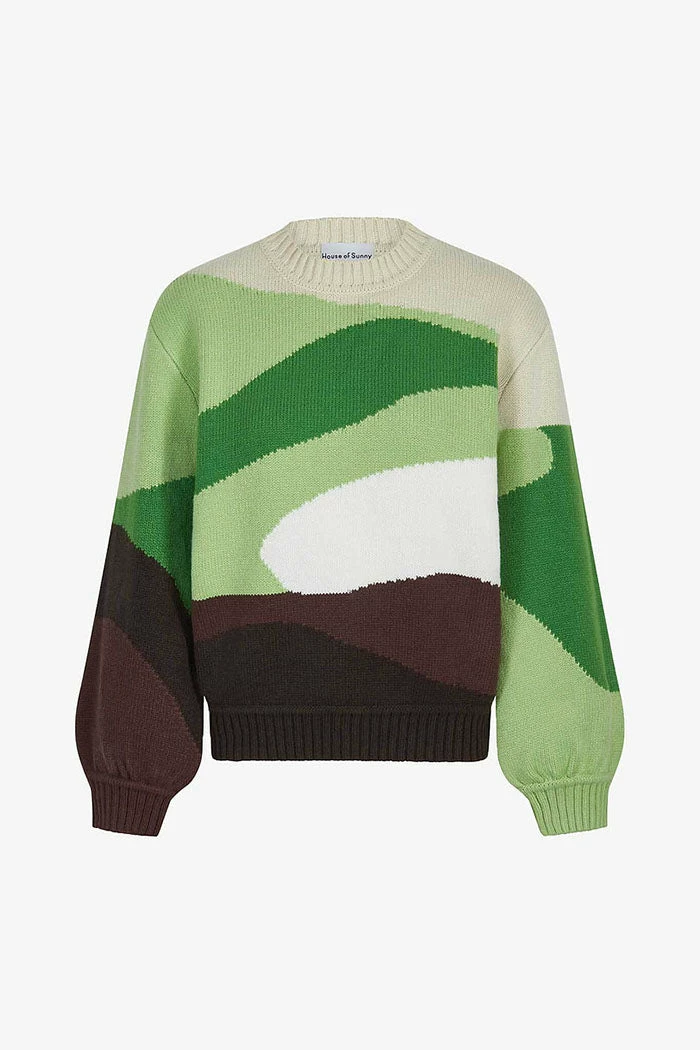 House of Sunny Golden Years landscape knit crewneck sweater.