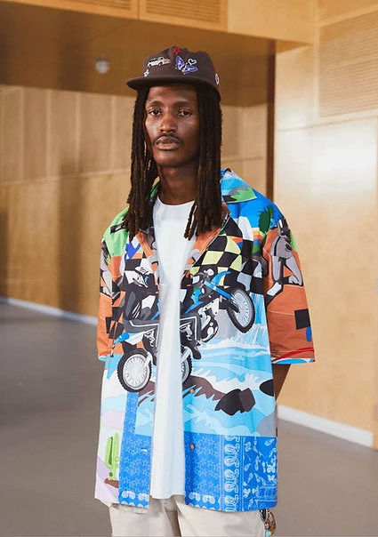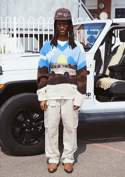 House of Sunny Journey hat in chocolate brown. A colorful collection of patches and embroidery: stars, butterfly, dice, SUV ready to road trip.  It has a nonchalant fit, which can be adjusted with a cinch-strap fastening in the back.