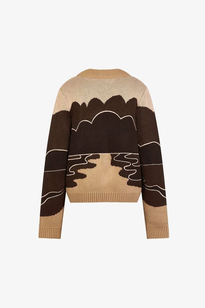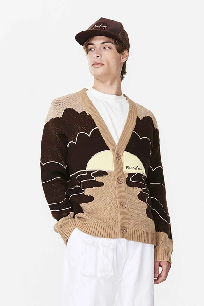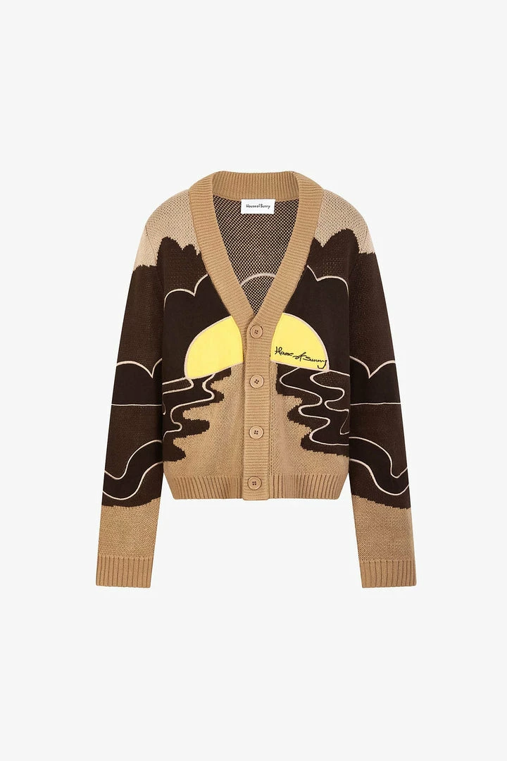 House of Sunny When the Sun Goes Down cardigan. Slouchy relaxed fit cardigan with applique sun and embroidery.