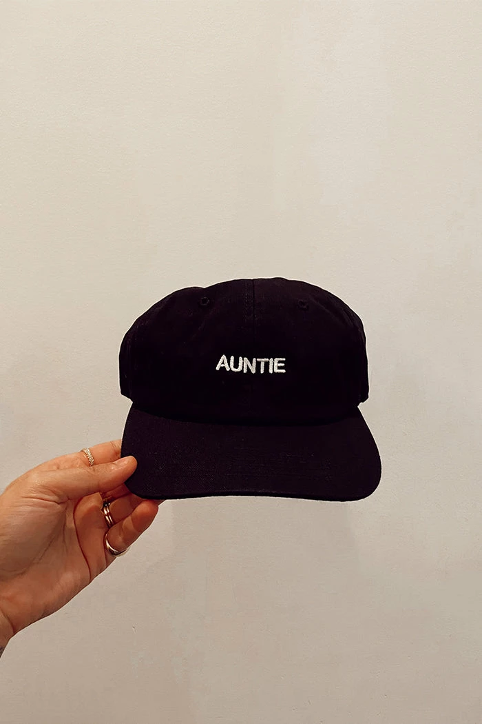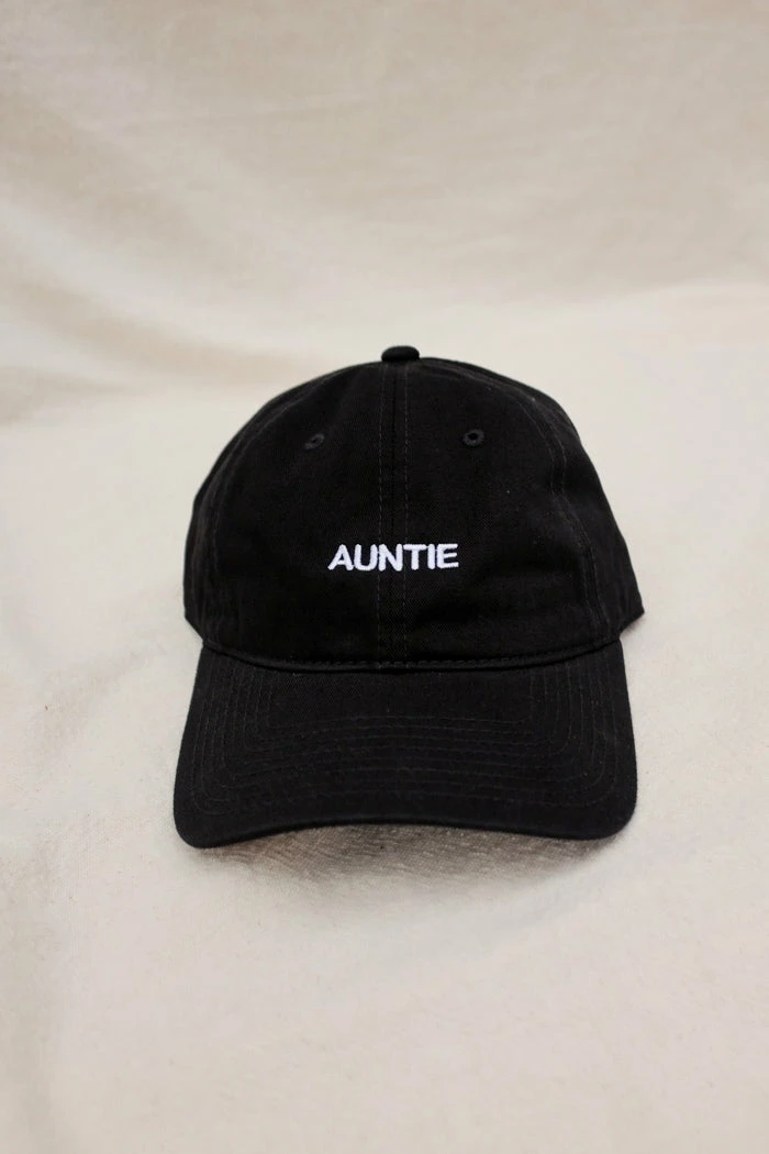 “AUNTIE” Intentionally Blank dad hat in black with white writting.