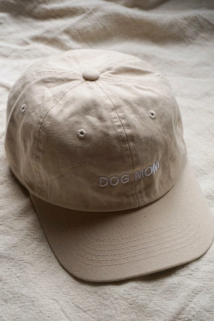 “DOG MOM” Intentionally Blank dad hat sand with white writing.