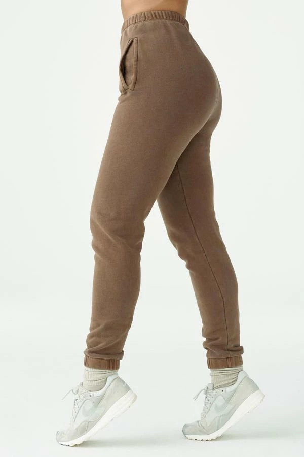 Joah Brown Empire french terry jogger in cocoa brown. High-waist sweatpants with a relaxed but tapered silhouette. Side pockets, fitted ankle bands, and an elastic waist with adjustable drawstring.