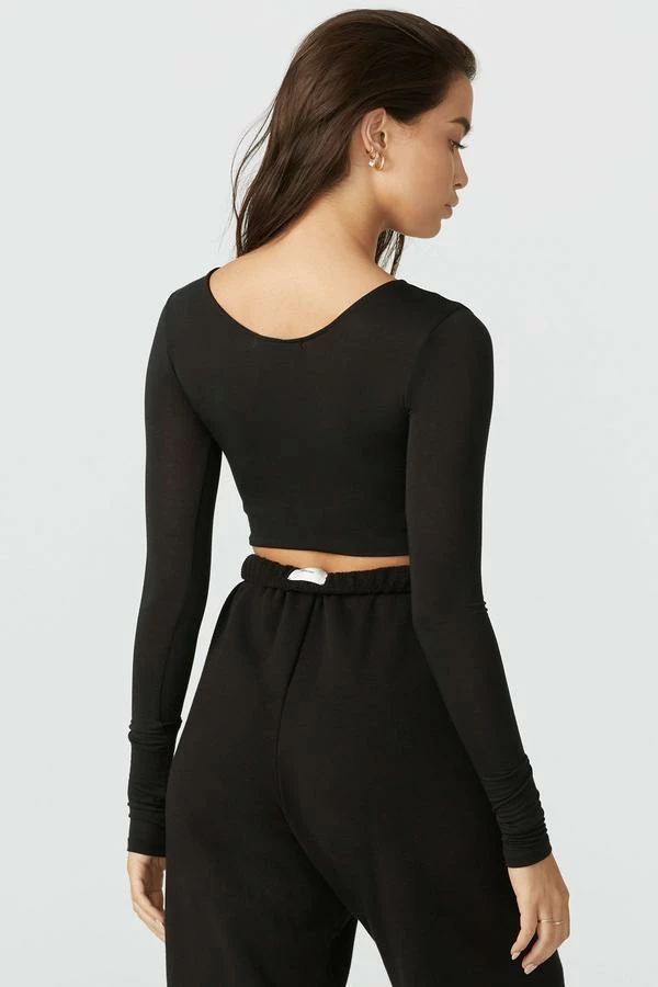 Joah Brown wide scoop neck long sleeve cropped t-shirt in black. This modal long sleeve is ultra comfortable, super soft, and breathable.