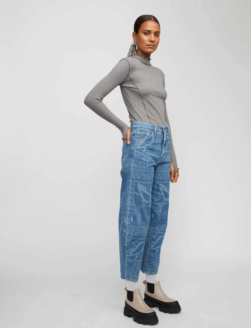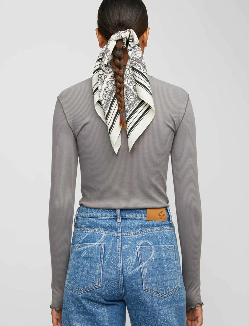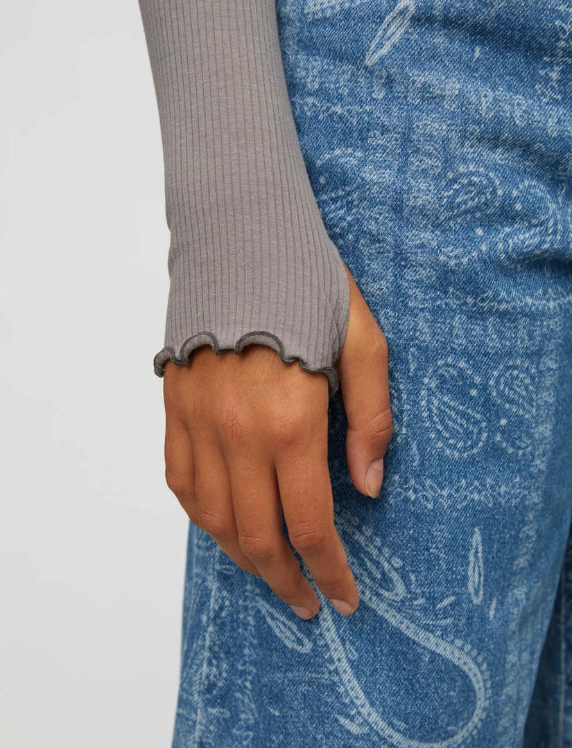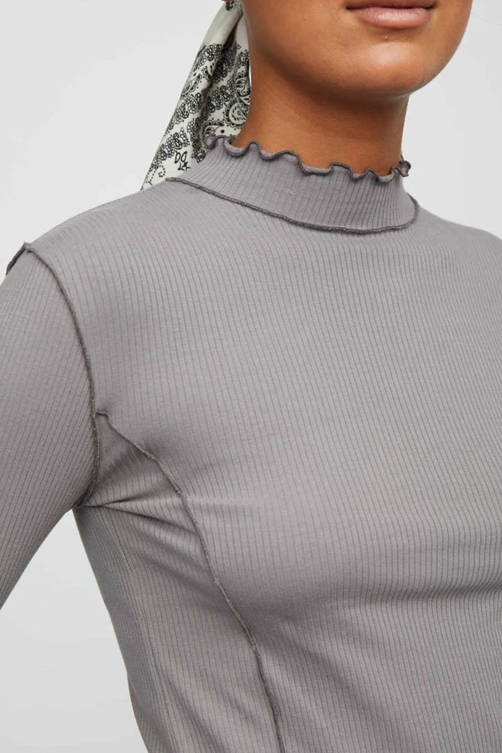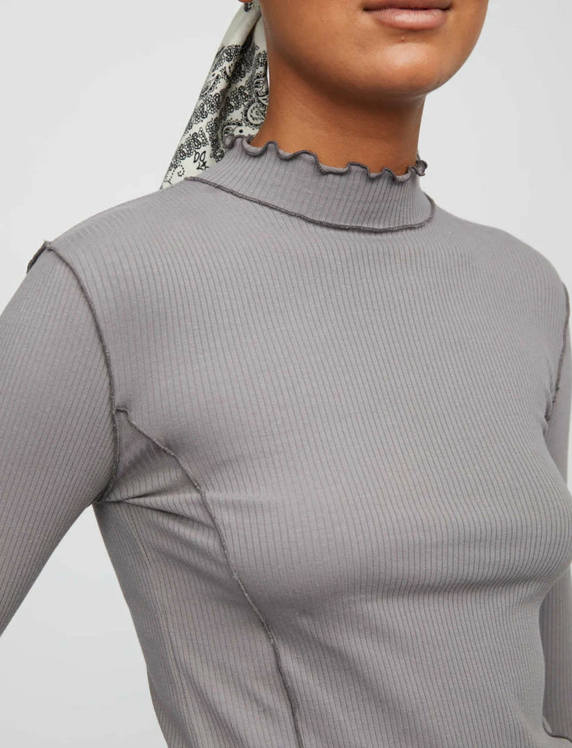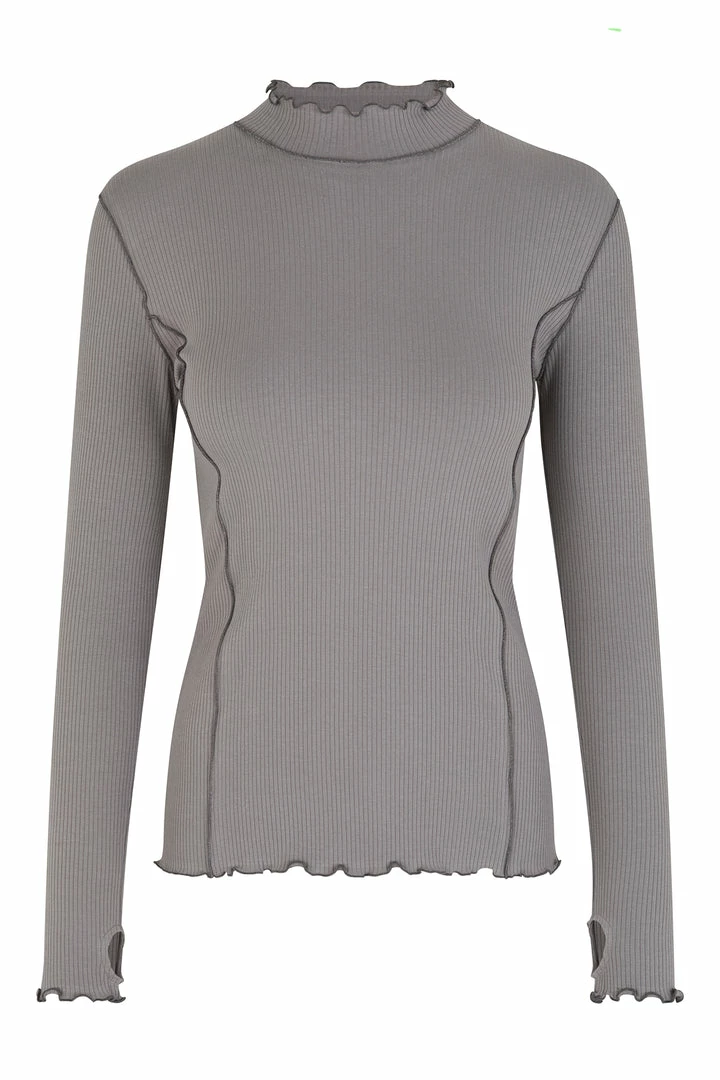 Just steel grey Begin ribbed fitted top with contour stitching.