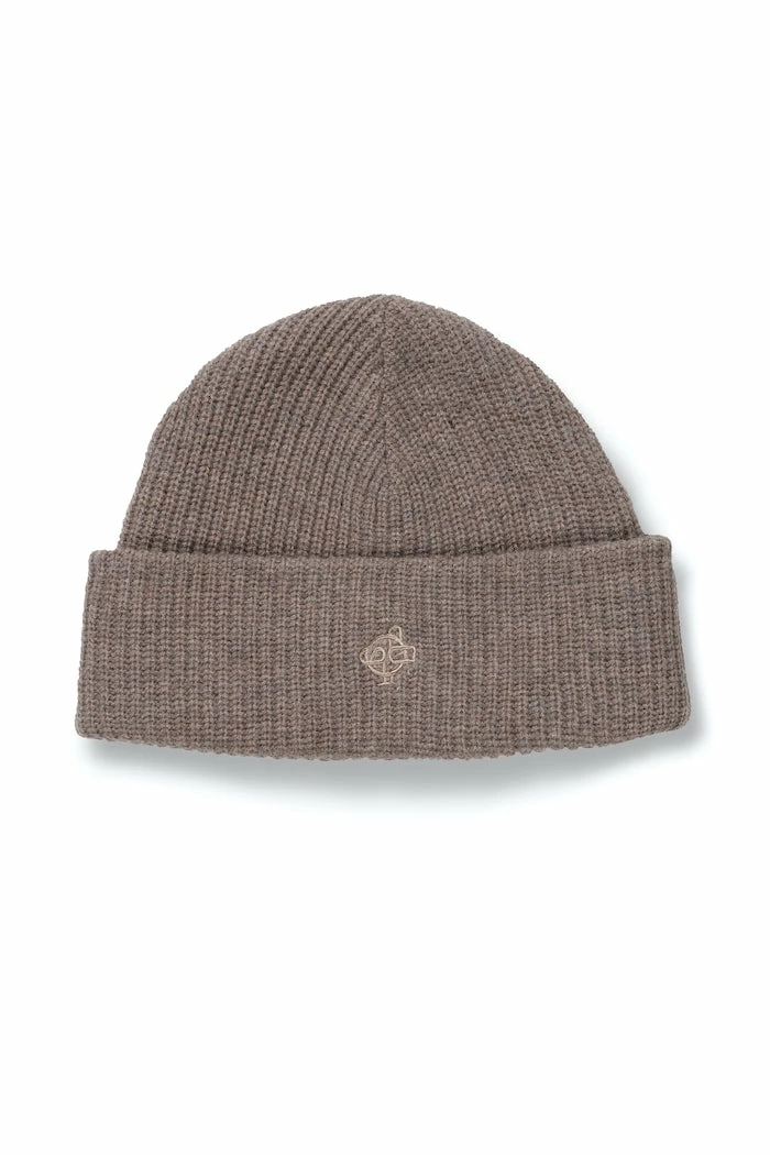 Just Cloudy ribbed beanie in Falcon taupe brown.