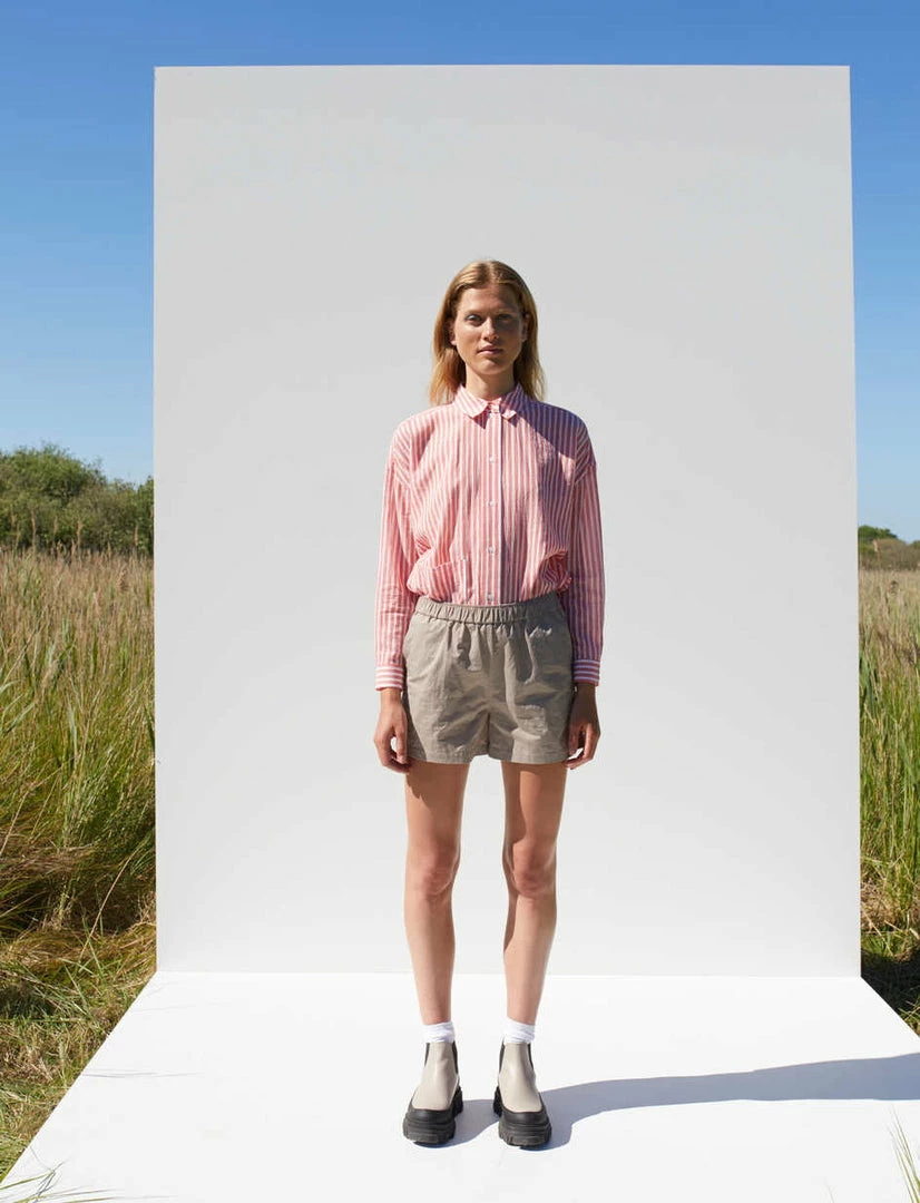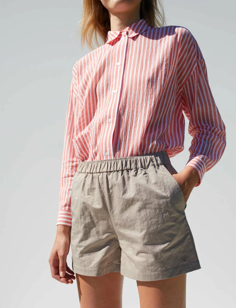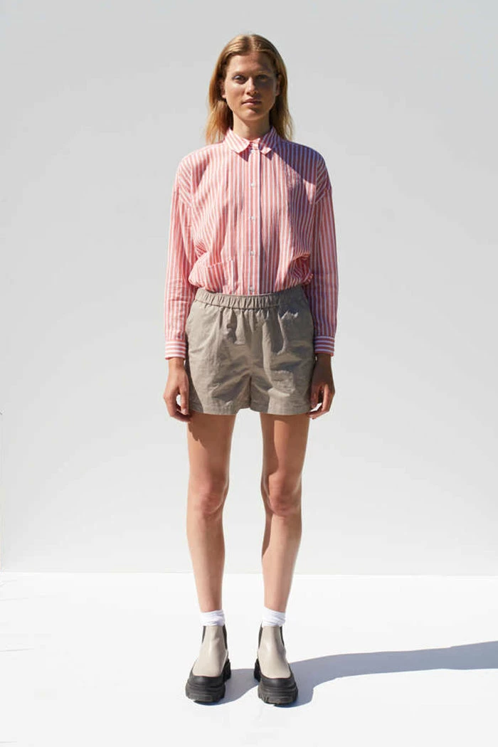 Just Female Lucky shorts in moon rock khaki tan. Stretch waistband and side pockets.