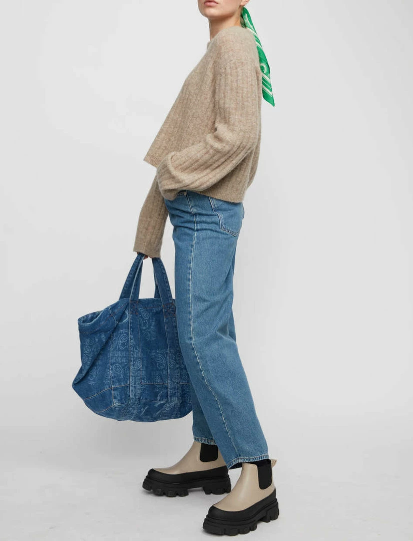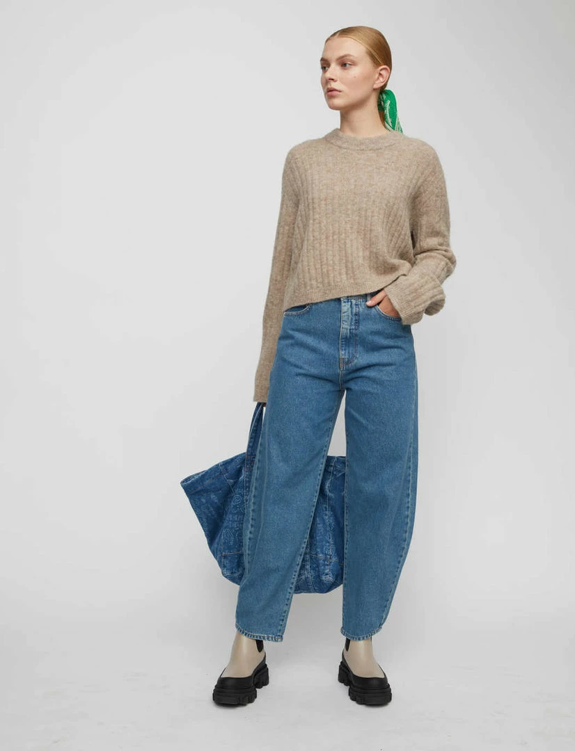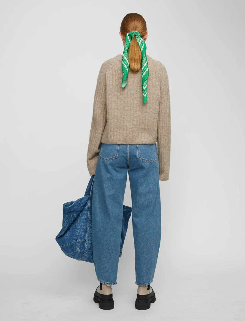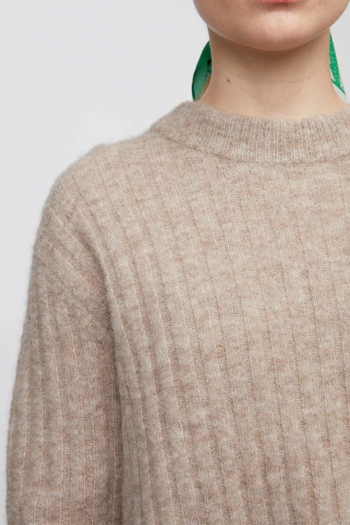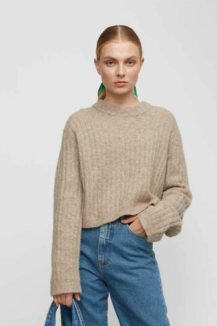 Just Female super soft Rebelo cropped knit jumper sweater in taupe moon taupe.