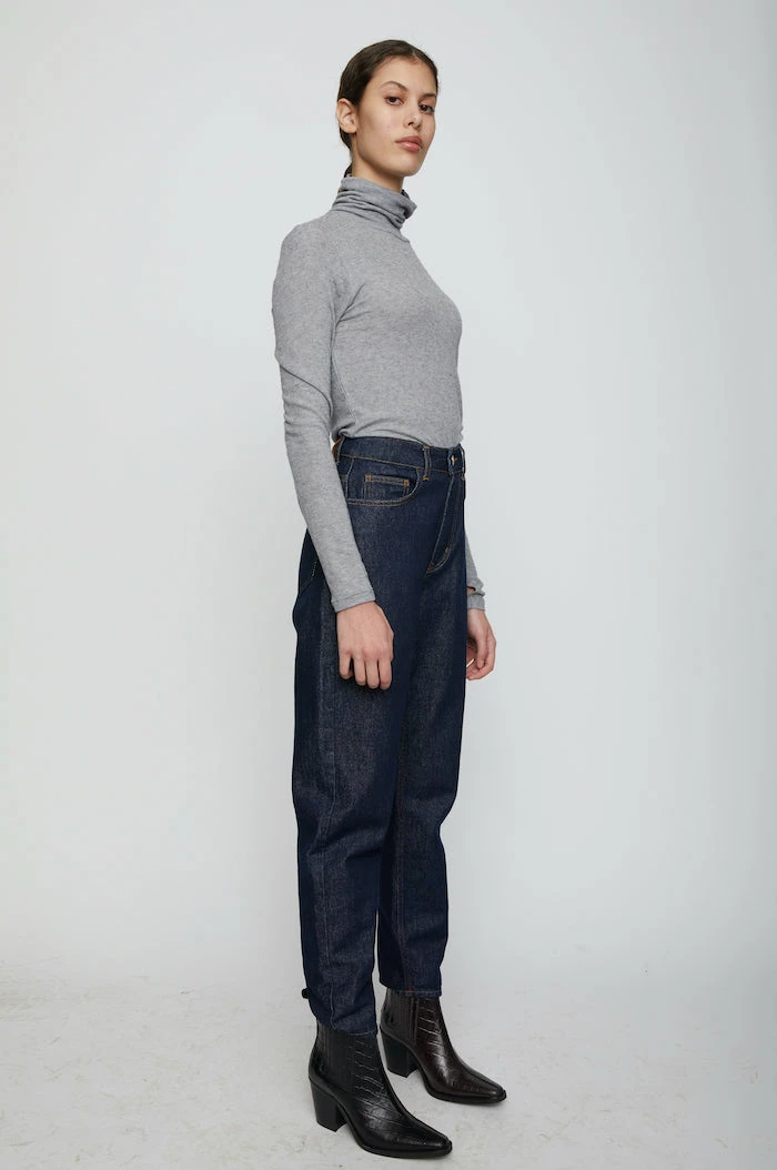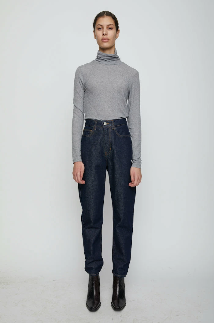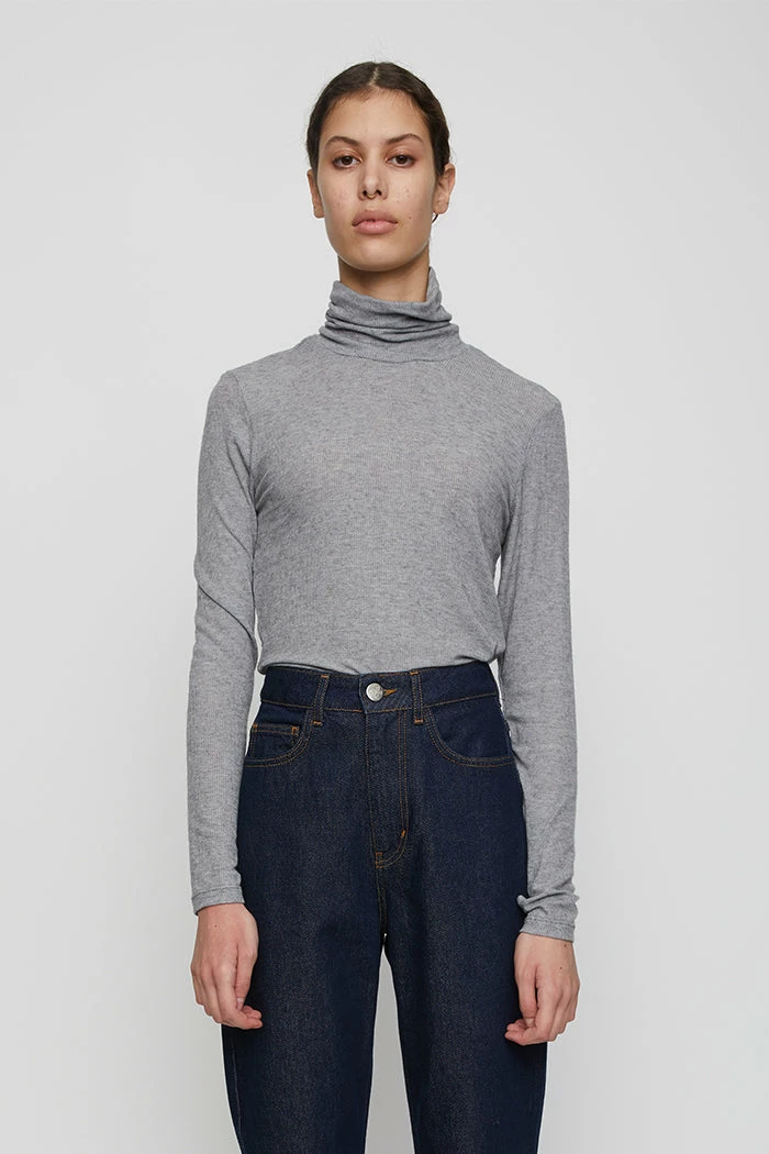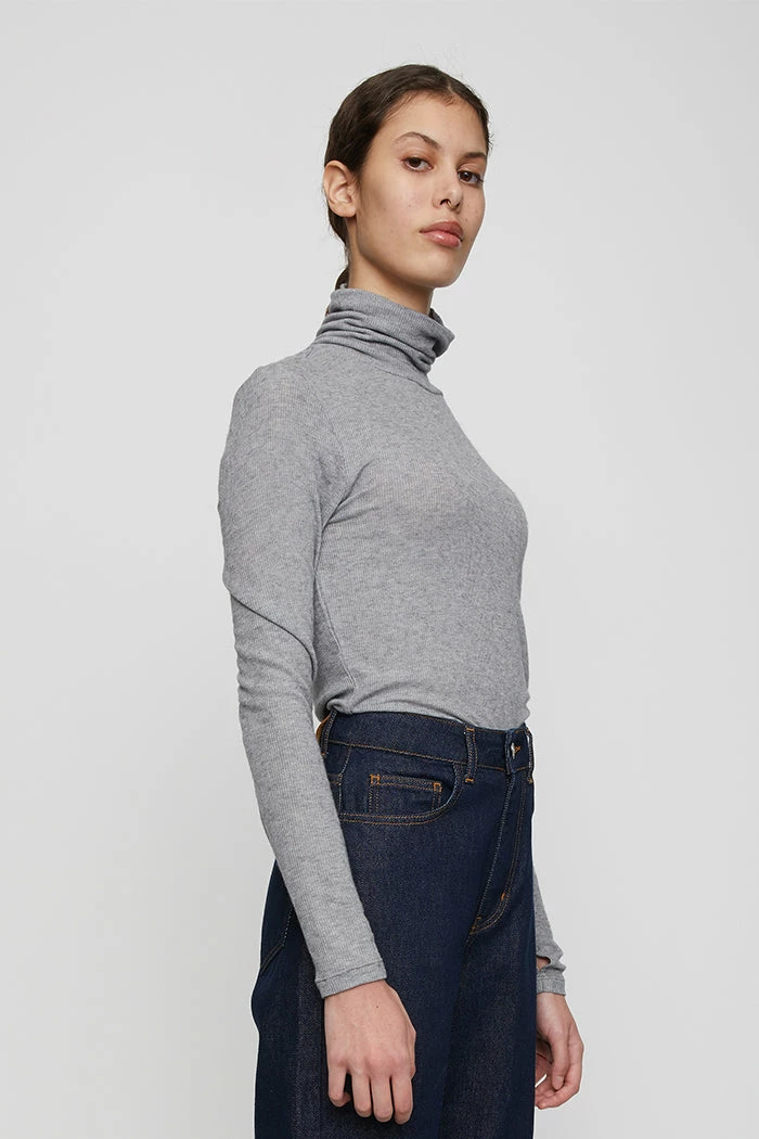 Just Female Millie long sleeve turtleneck thin tee shirt in grey melange.