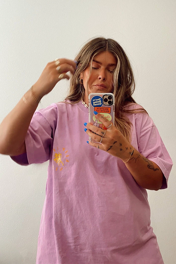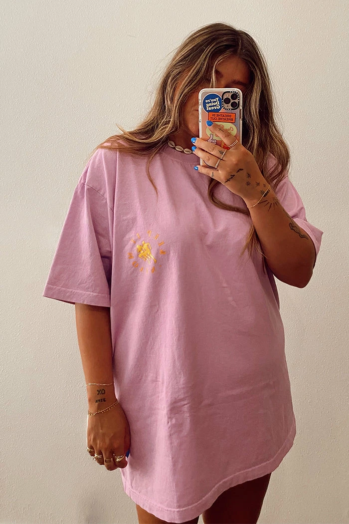 Keep it Movin’ Winners Circle oversized heavy weight tee in orchid purple.Â