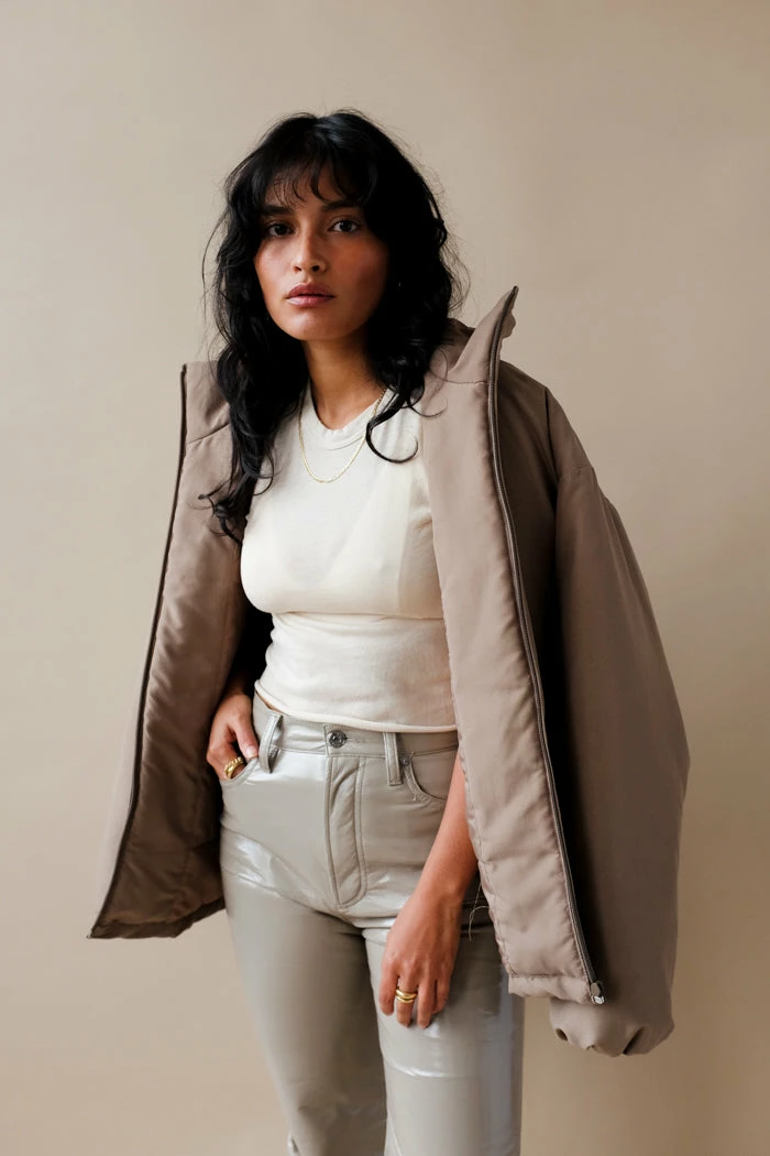 Lacausa baby Smith tee in sea salt light tan. This super soft shrunken tee is made of an organic cotton, recycled poly blend that gives it a slightly heathered look and the softest handfeel.