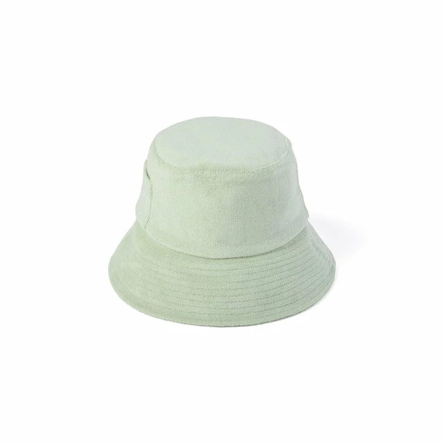 Lack of Color Wave bucket hat in mint green terrycloth. Cool and simple bucket hat. Throw on this easy to wear style for a sun-safe, street look.
