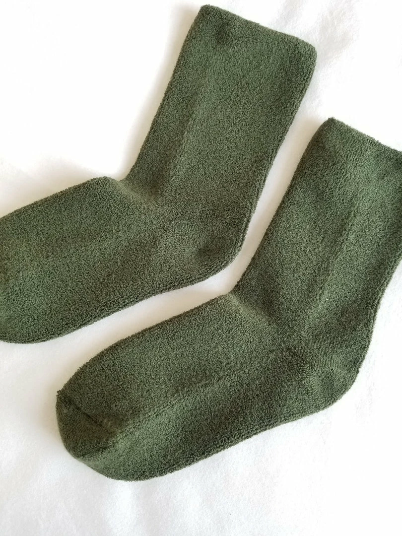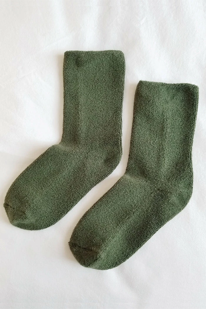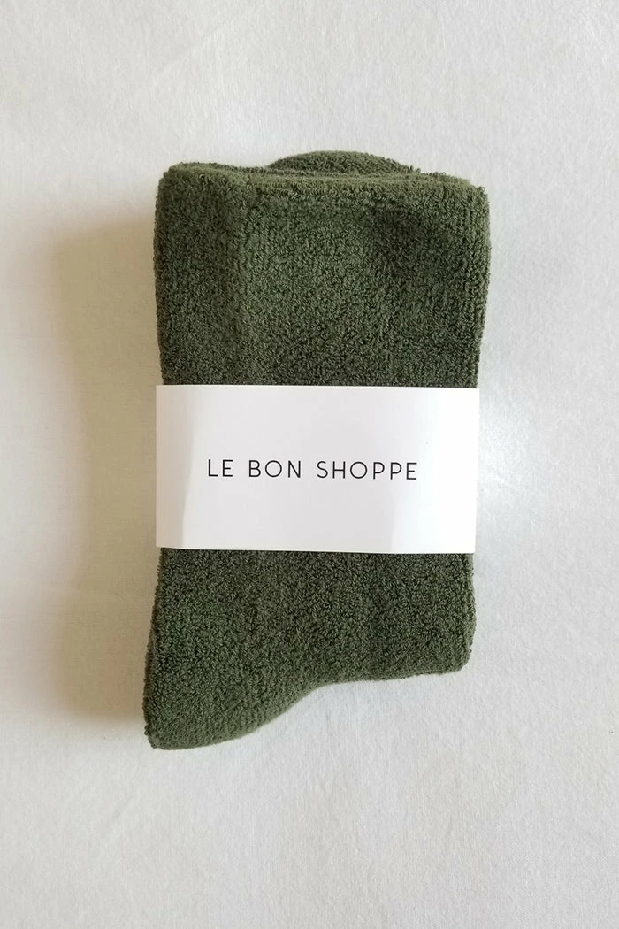 Le Bon Shoppe comfy, cozy, terry cloth Cloud socks in dark forest green.