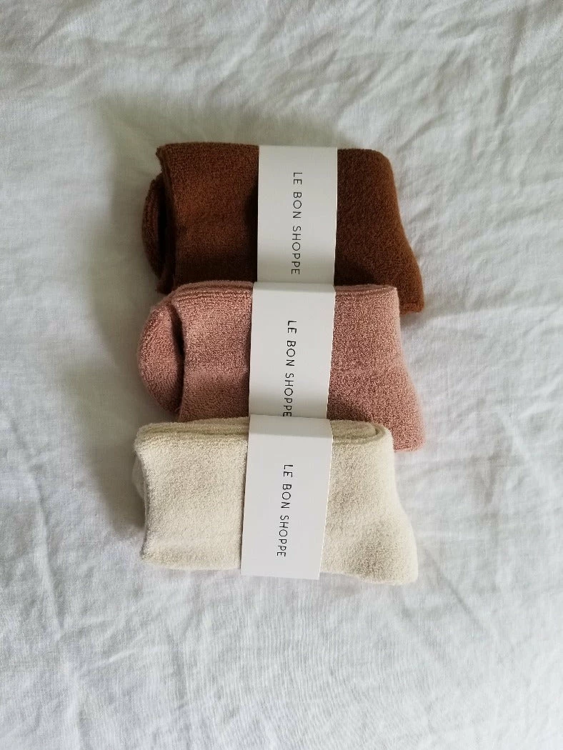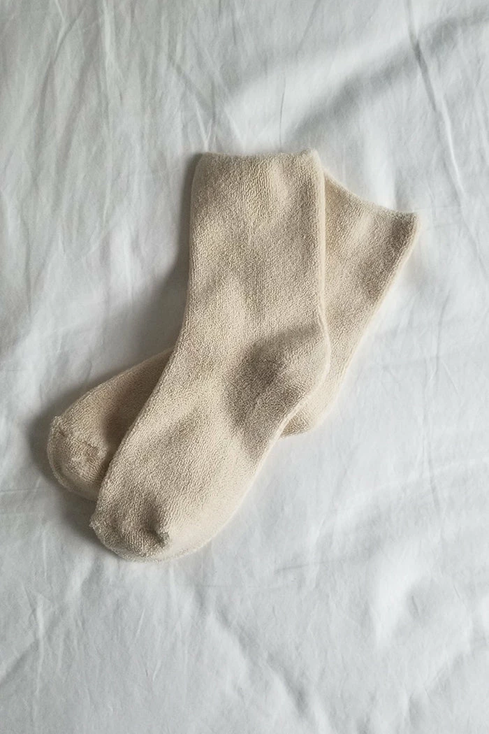Le Bon Shoppe comfy, cozy, terry cloth Cloud socks in ecru.