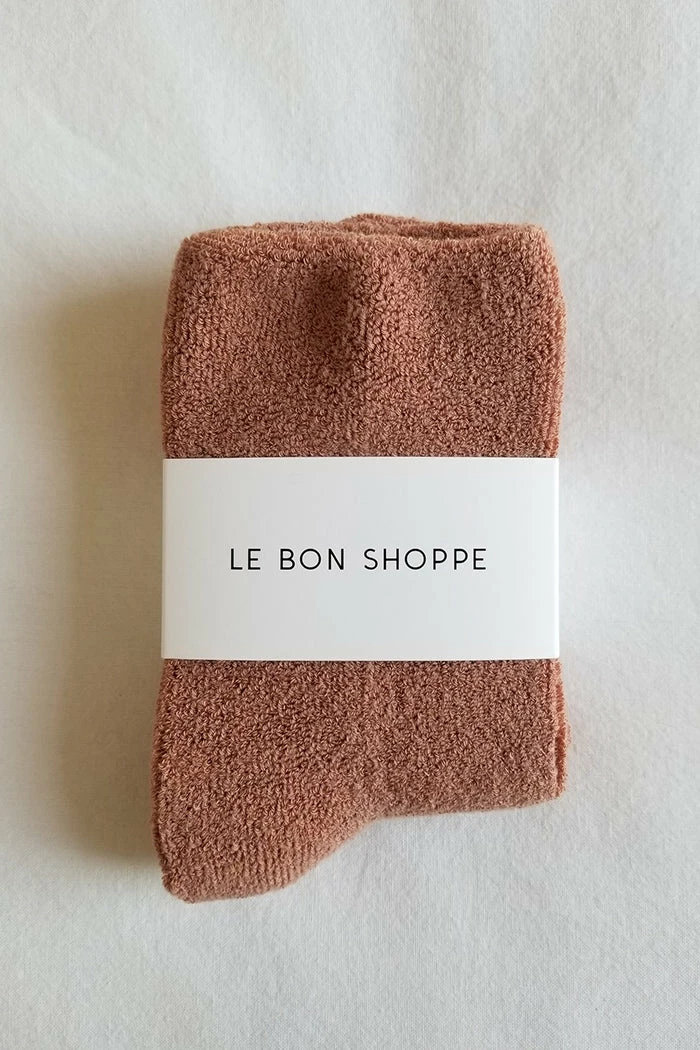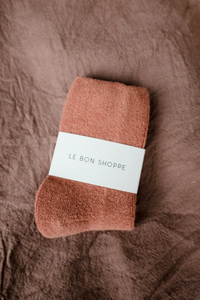 Le Bon Shoppe comfy, cozy, terry cloth Cloud socks in clay.