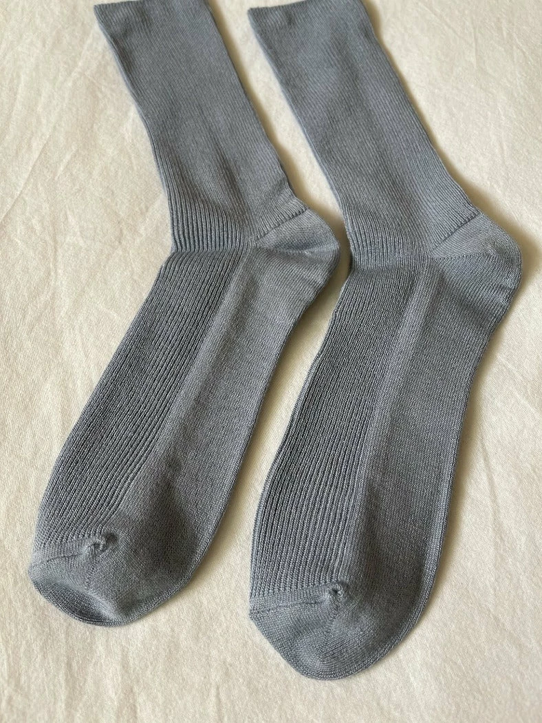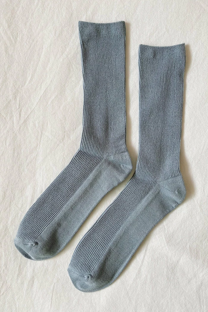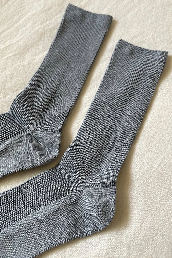 Le Bon Shoppe Trouser socks in blue bell dusty light blue. Long, soft, luxurious leg warmer socks, scrunch down or pull up.