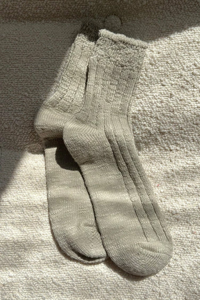 Le Bon Shoppe Hut socks in smoke sage. A chunky knit and natural cotton blend, that wears just slightly above the ankle.