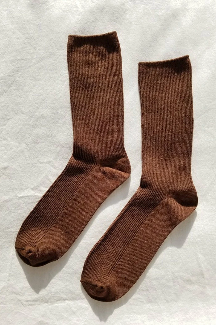 Le Bon Shoppe Trouser socks in dijon rich brown. Long, soft, luxurious leg warmer socks, scrunch down or pull up.