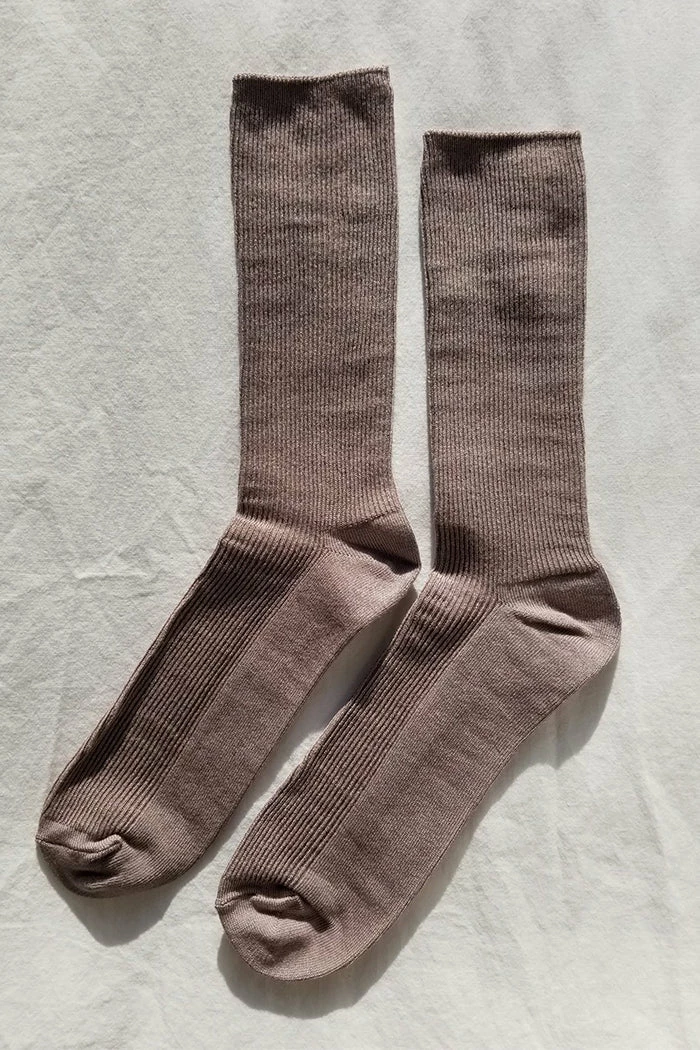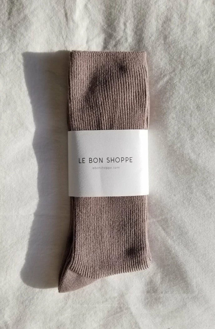 Le Bon Shoppe Trouser socks in trenchcoat dusty mauve. Long, soft, luxurious leg warmer socks, scrunch down or pull up.