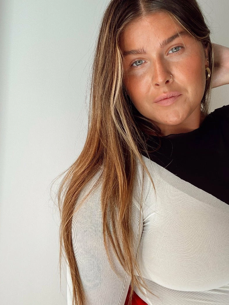 Model 1 is wearing size S. Model 2 (Dani) is wearing a size M.