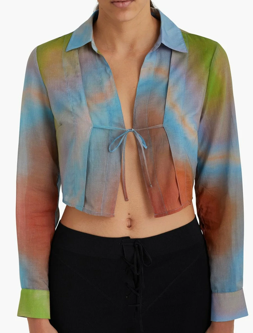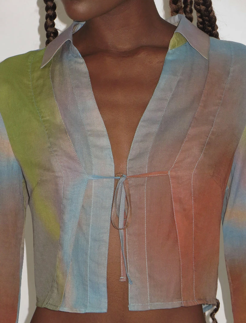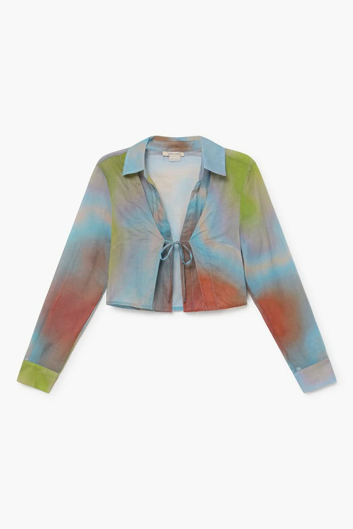 Paloma Wool collared Carolee long sleeve colorful print with front lacing. Print by Nika Milano.