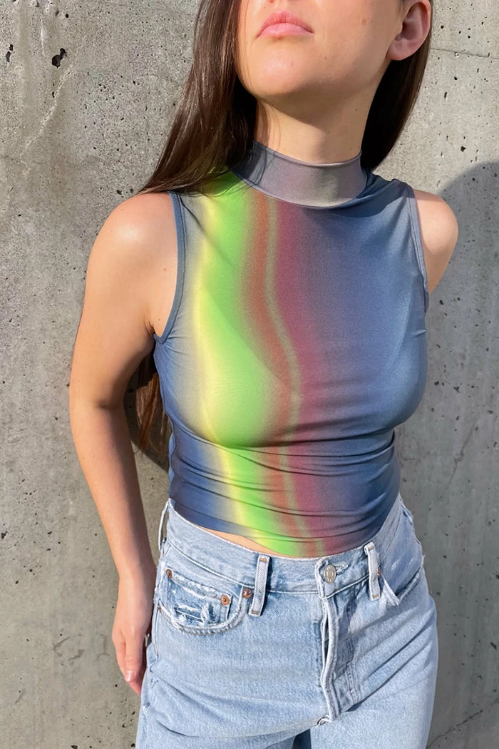 Paloma Wool Norway mock-neck sheer tank top in northern lights print.