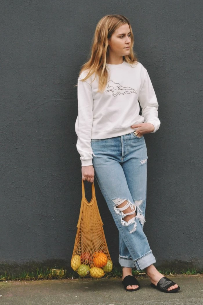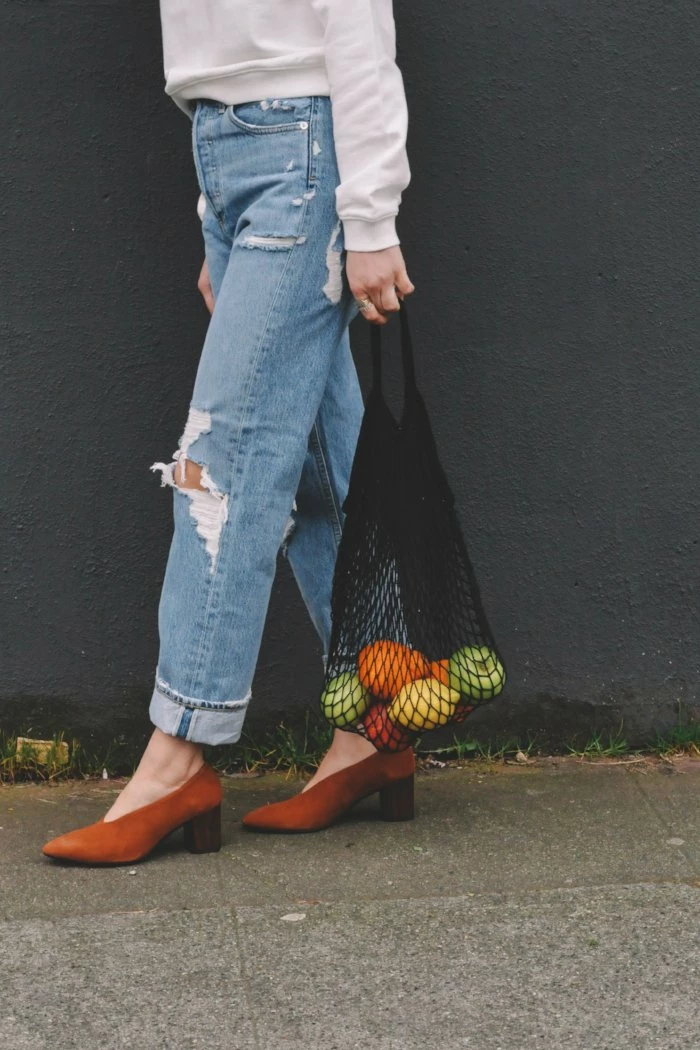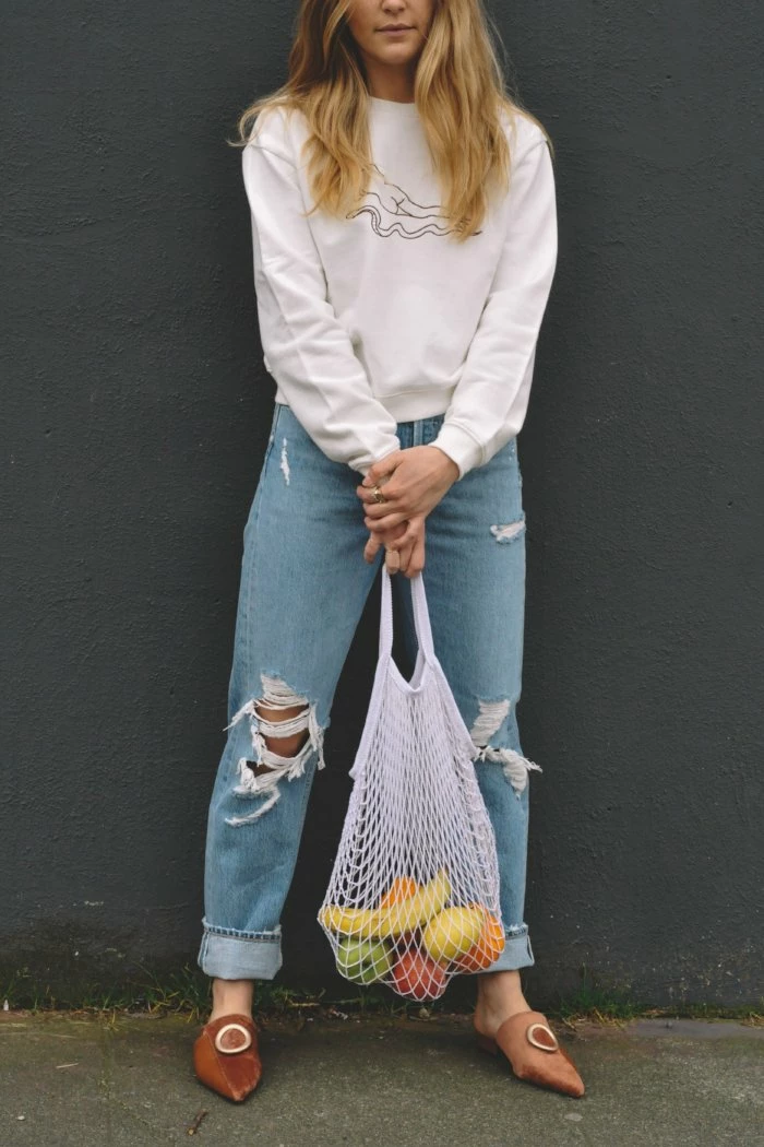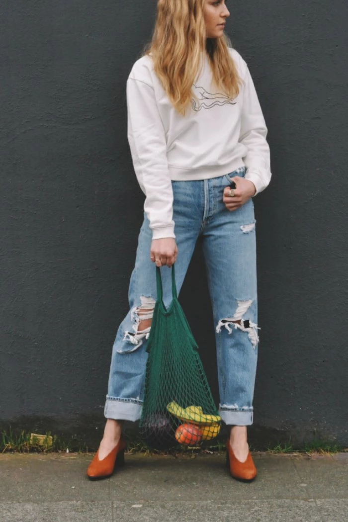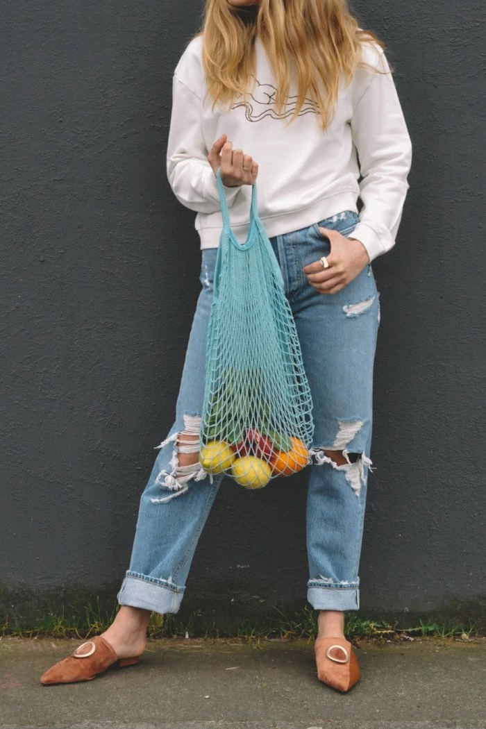 Net market bag in ice white. The more weight you carry the longer the straps get, throw anything from your clutch in or use it as a chic reusable grocery tote! Take them to work, to the beach or out on the town… there is infinite uses for these earth friendly totes.