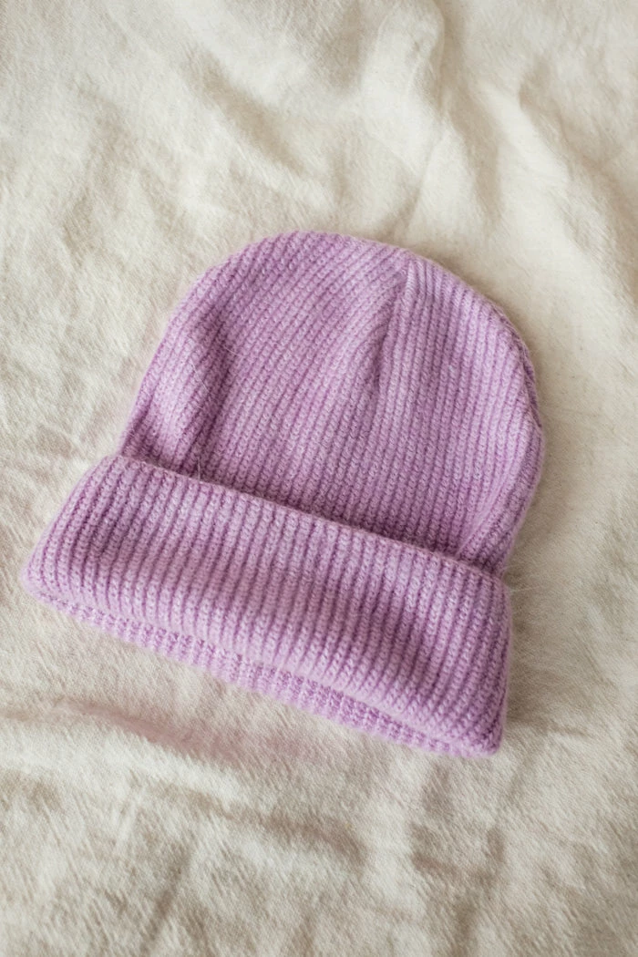 Smith knit lilac purple beanie is the perfect fuzzy beanie for the winter.