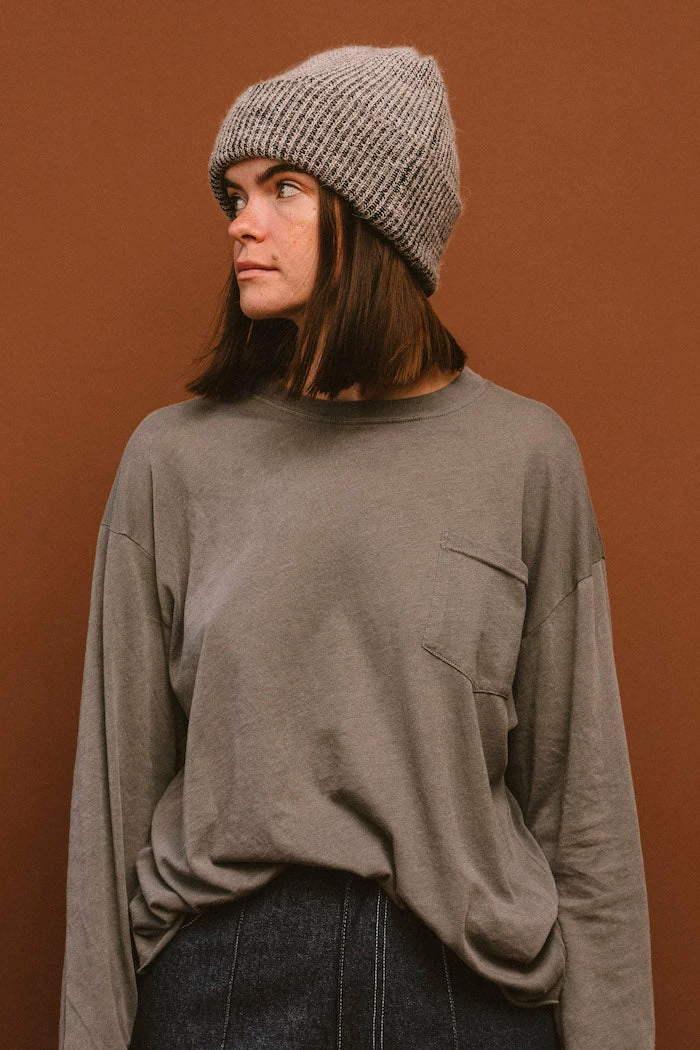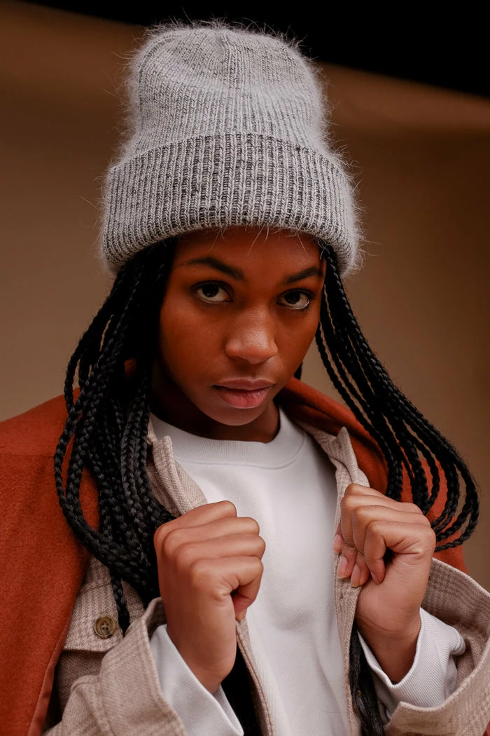 Smith knit dark grey beanie is the perfect fuzzy beanie for the winter.