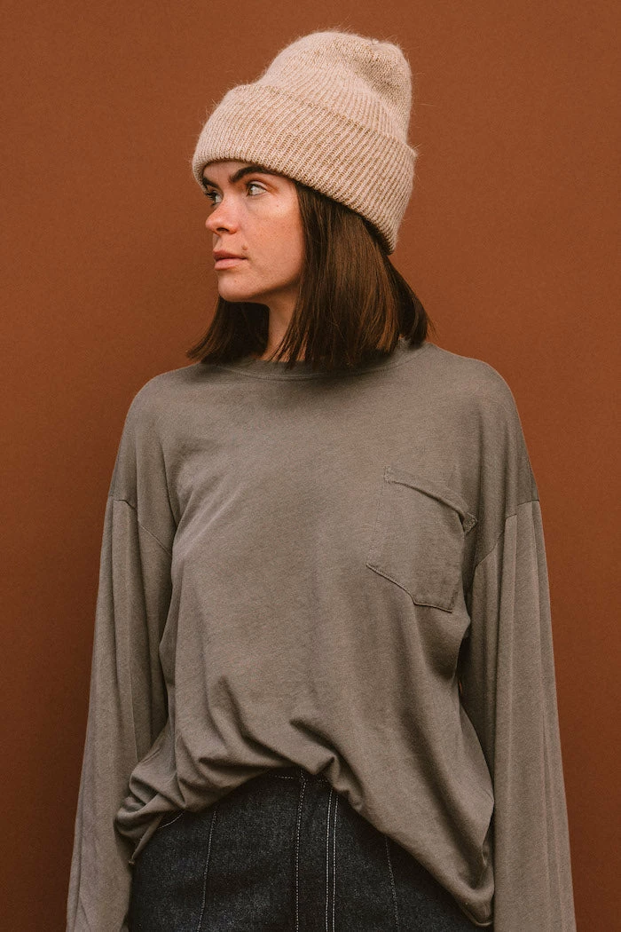 Smith knit khaki tan beanie is the perfect fuzzy beanie for the winter.