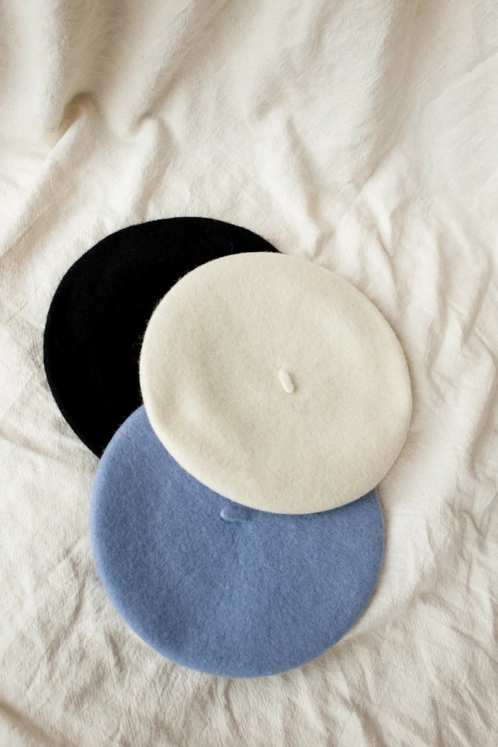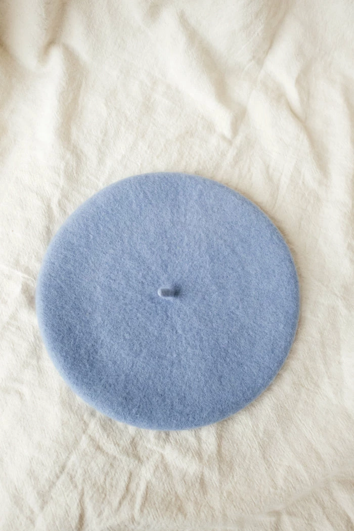 Wool beret hat in periwinkle blue.