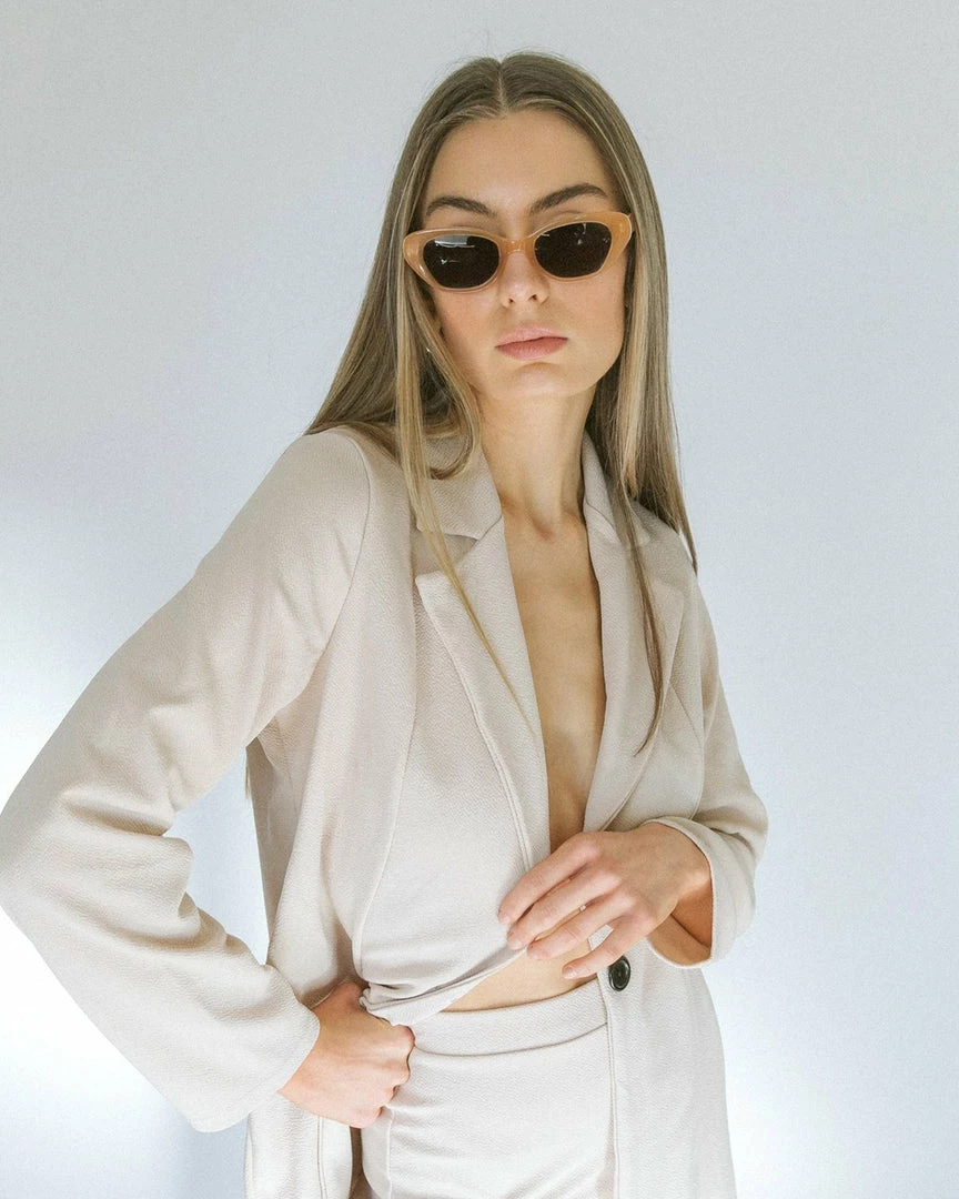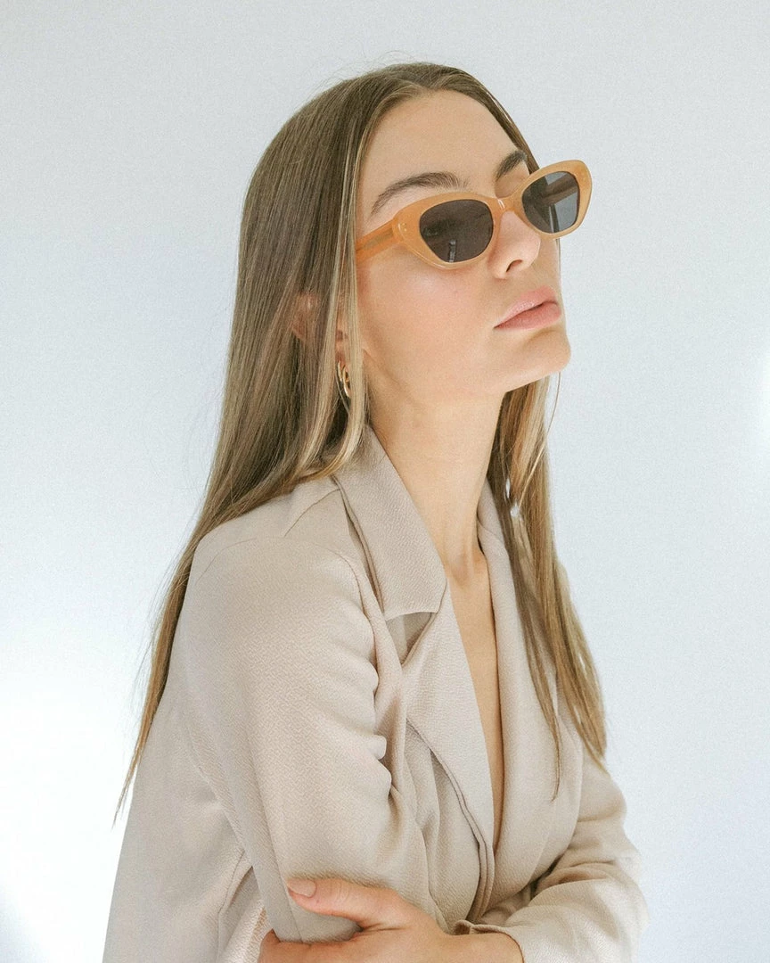 Raie eyewear Bambi sunglasses in transulecent honey.