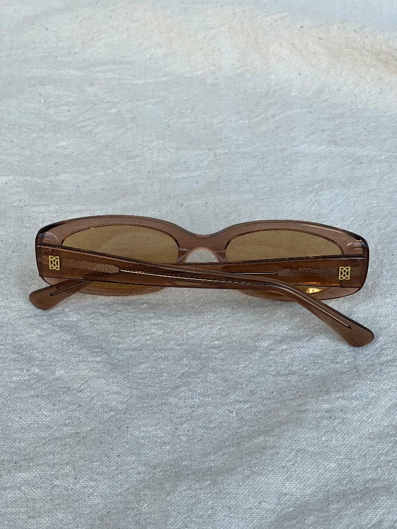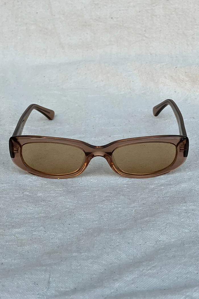Raie eyewear Jacquie sunglasses in translucent fawn. She’s feminine, flirty and seductive. This micro shade is exceptional when it comes to people watching. Weather forecast? Sunny with a chance of 1996.