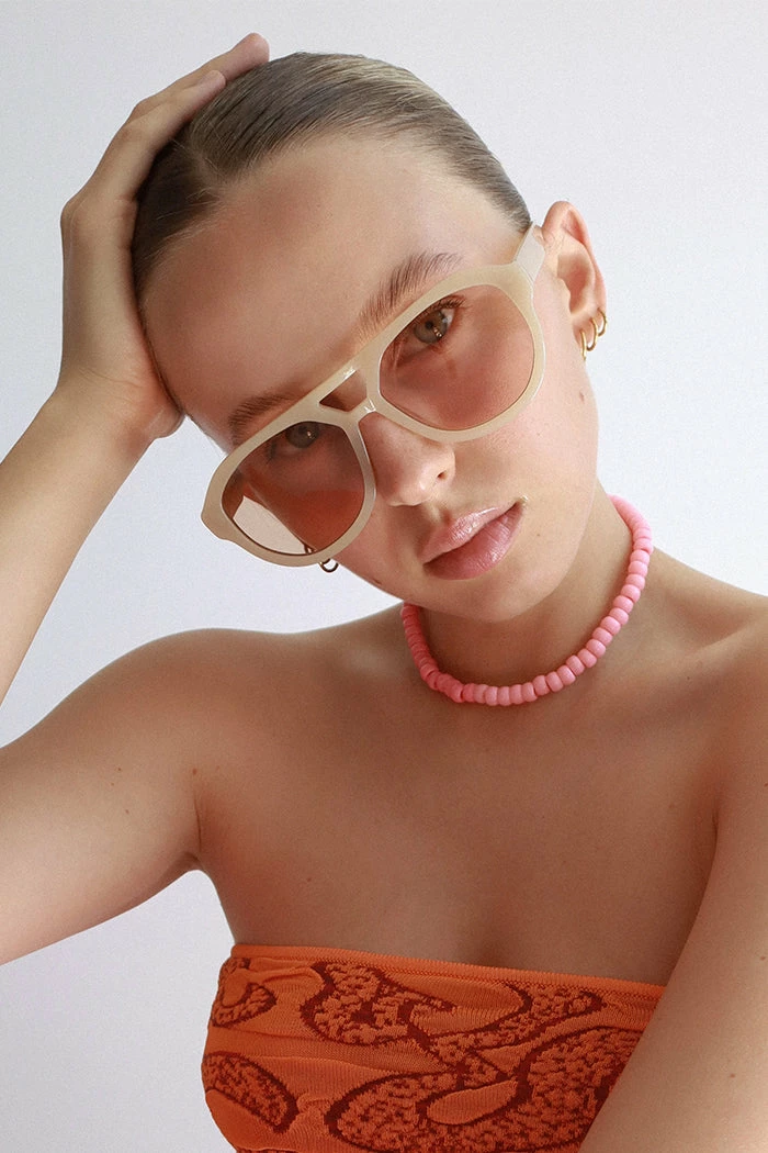 Raie eyewear Steve aviator 70’s style sunglasses in latte.