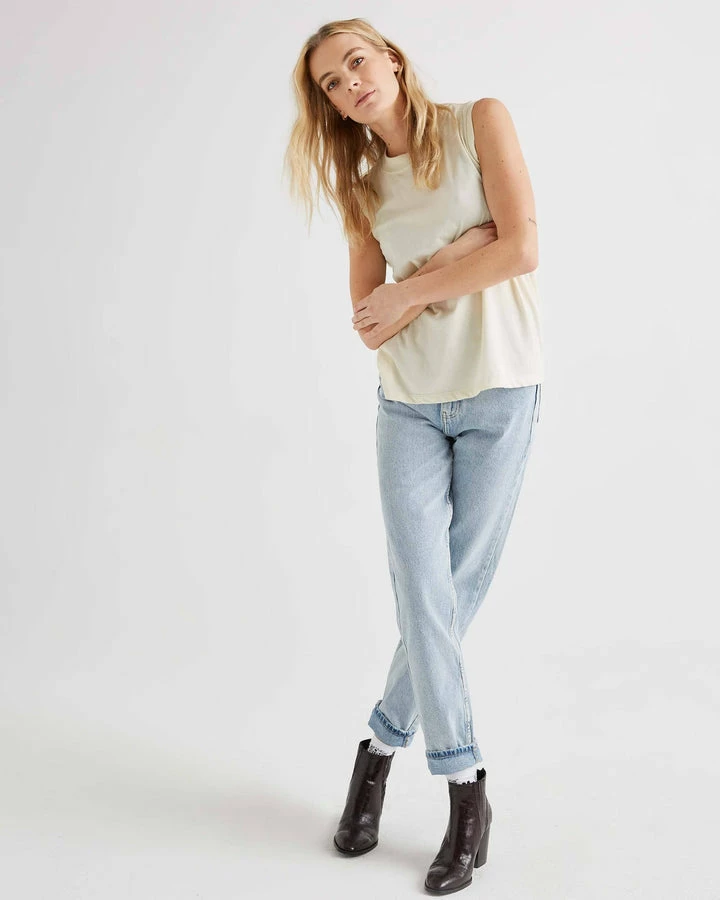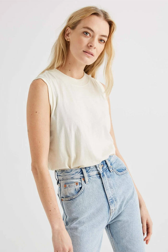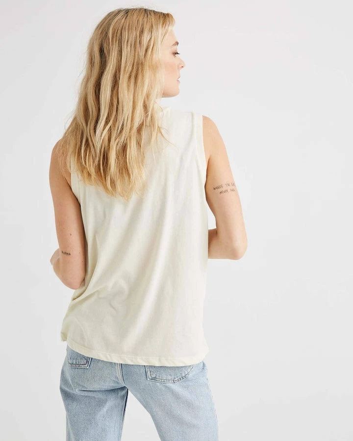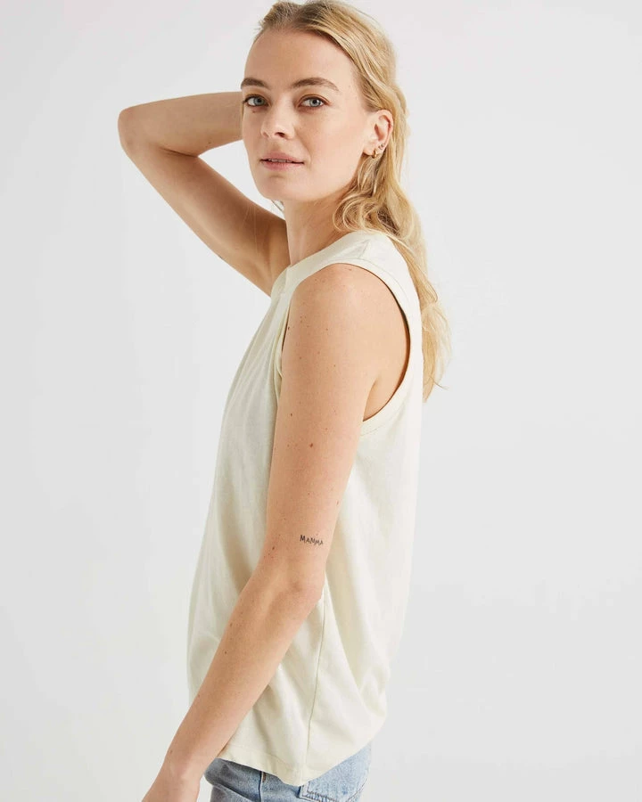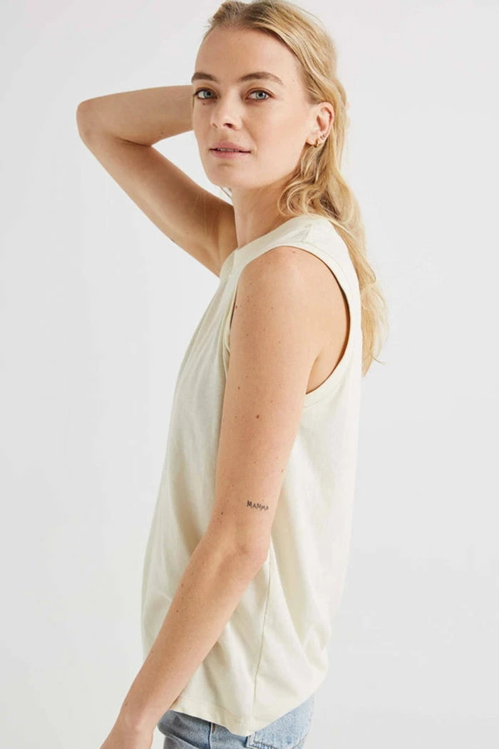 Richer Poorer classic fit Easy Muscle tank, with oversized neck rib silicone washed, in white sage.