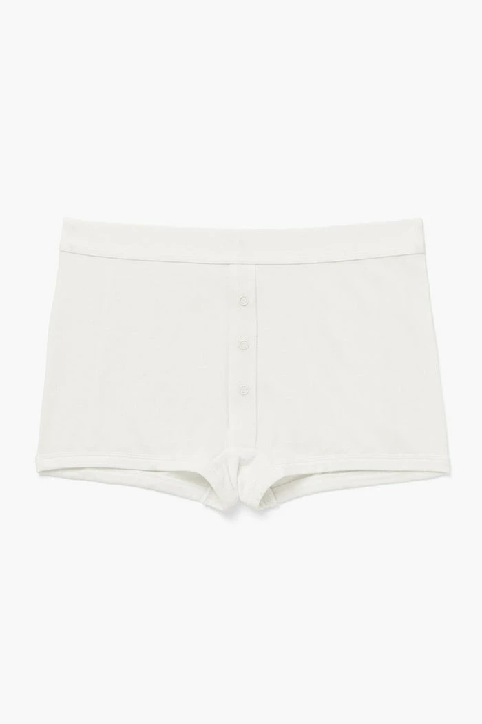 Richer Poorer bone boxer briefs in bone. Soft elastic waistband, faux snap detail at front, ultra-soft modal cotton blend, shrink resistant.