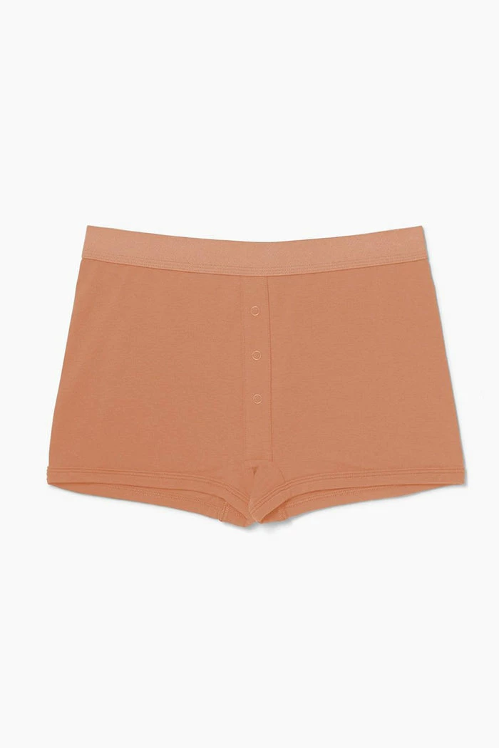 Richer Poorer clay boxer briefs. Soft elastic waistband, faux snap detail at front, ultra-soft modal cotton blend, shrink resistant.
