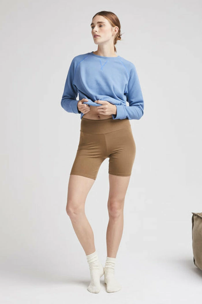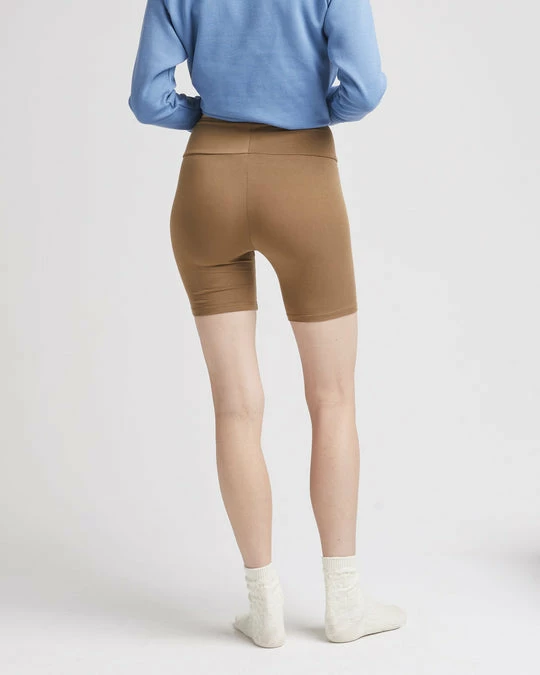 Richer Poorer lyocell high rise bike shorts in morning roast brown. Mid thigh length.