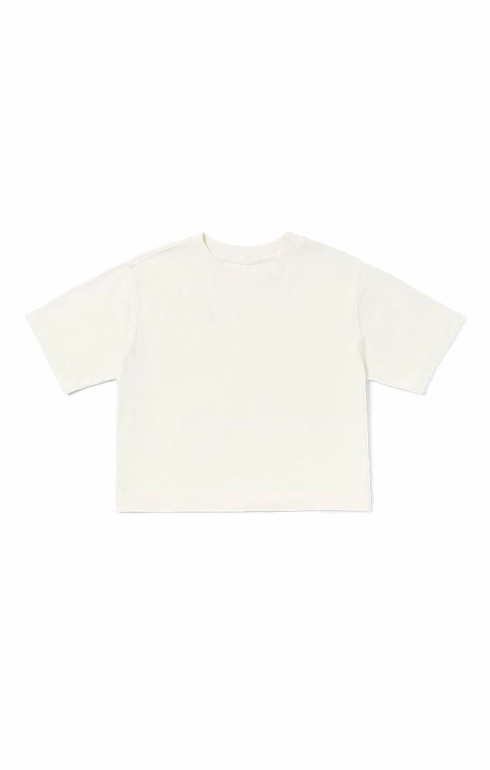 Richer Poorer bone relaxed short sleeve crop tee in amazing semi thick cotton. Pigment dyed, dropped shoulder seams. Oversized neck rib.
