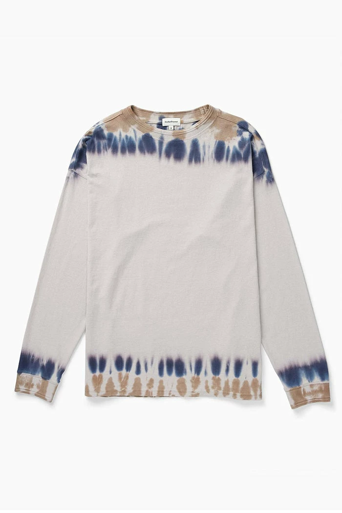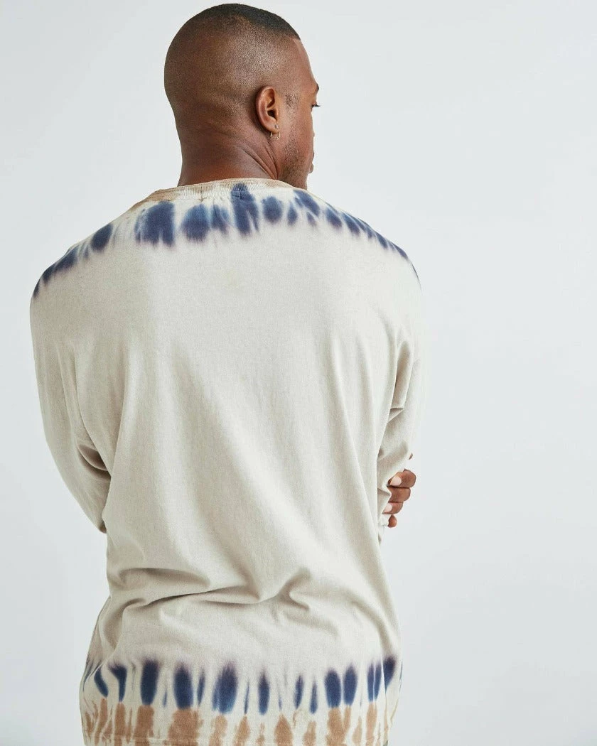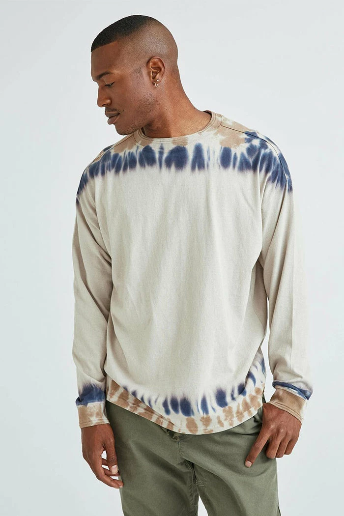 Richer Poorer Unisex Relaxed Long Sleeve Pullover Tee in tie dye. Men’s style relaxed fit, pigment dyed, dropped shoulder seams, novelty sweater rib detail and novelty stitching detail.